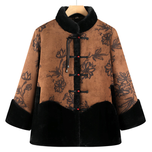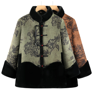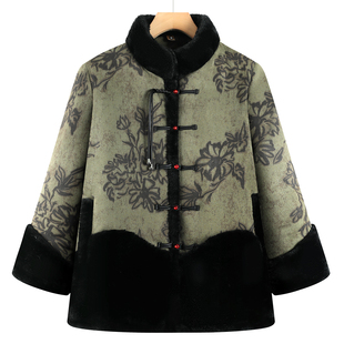 厚棉服外套洋气短款 秋冬加绒保暖小棉衣妈妈装 棉袄 中老年女装 新款