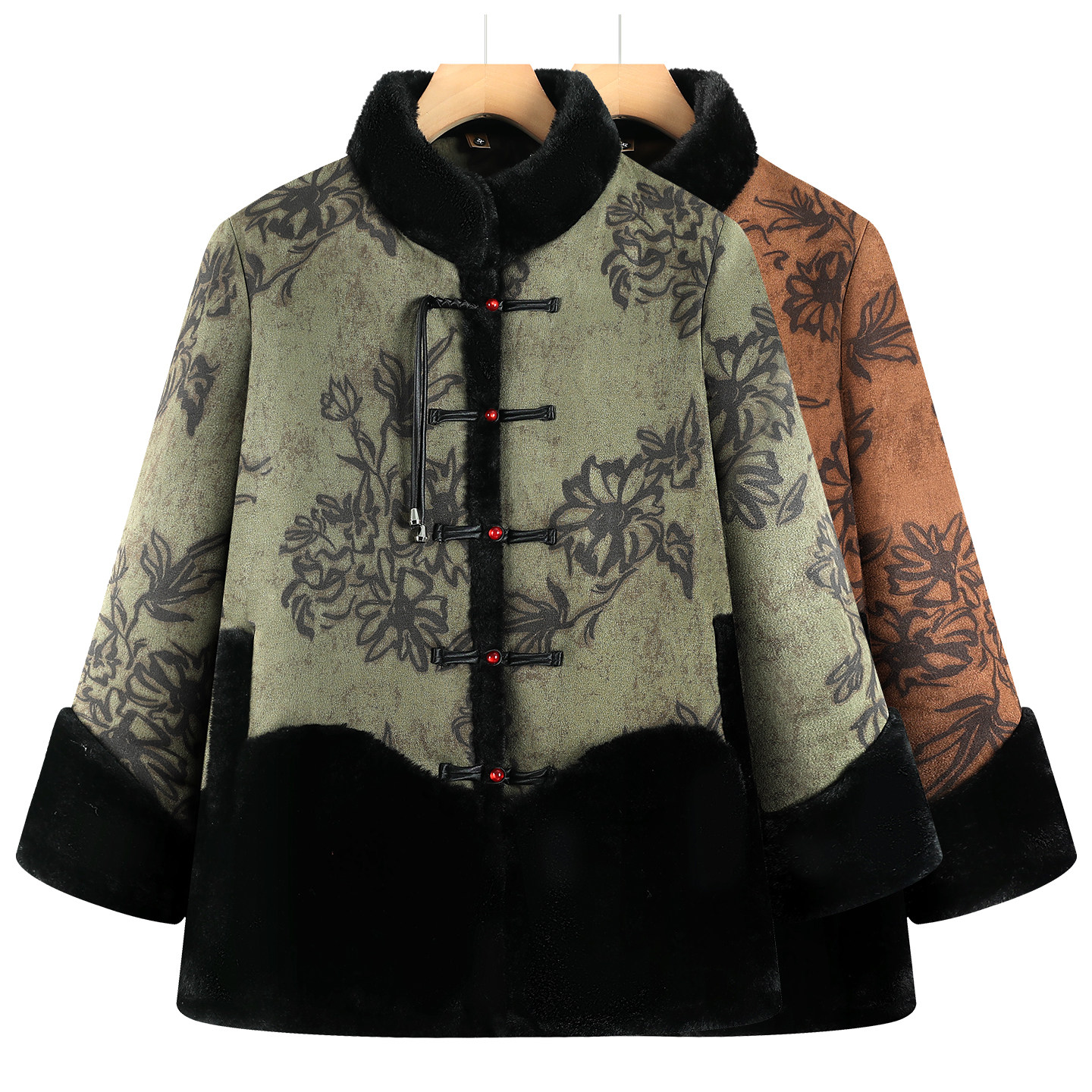 冬 减龄洋气保暖棉服中老年大码 妈妈装 加绒加厚颗粒绒棉衣中年女装