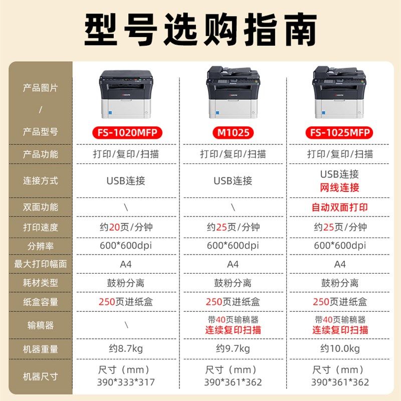 京瓷FS M1025家用办公1025MFP黑白激光多功能打印一体机 1020MFP