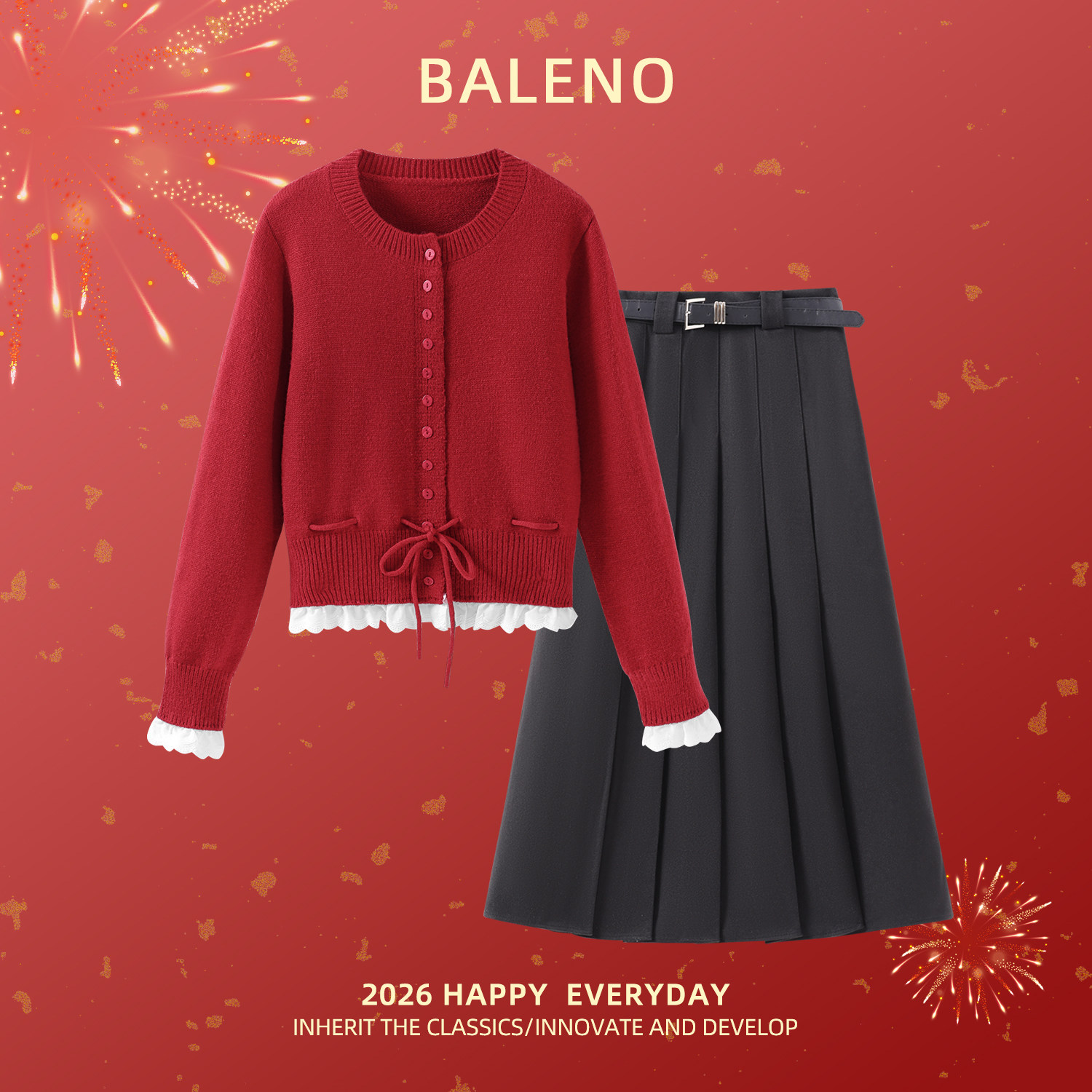 班尼路S&K系列毛衣冬裙套装 巨好看贺岁穿搭两件套H 女2025秋冬新款