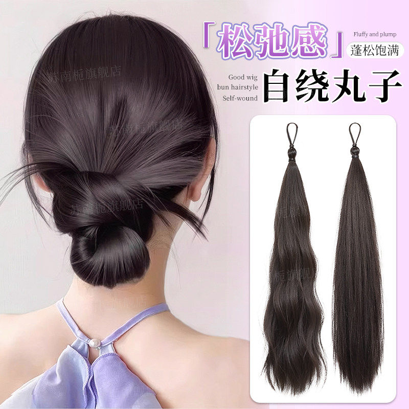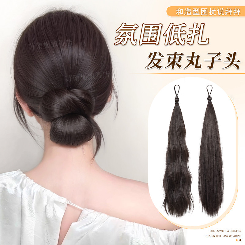 假发马尾女新中式 旗袍国风微卷低马尾 抓夹古风汉服假发辫子仿真式