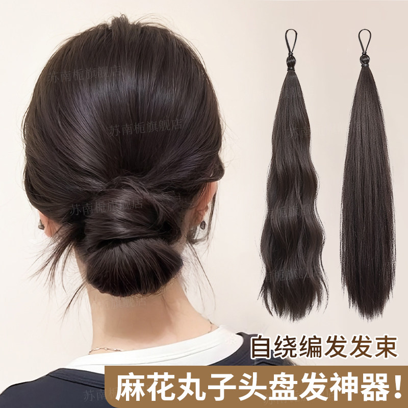 假发辫子新中式 假发自然仿真发抓夹麻花辫双马尾蝴蝶结假发马尾辫