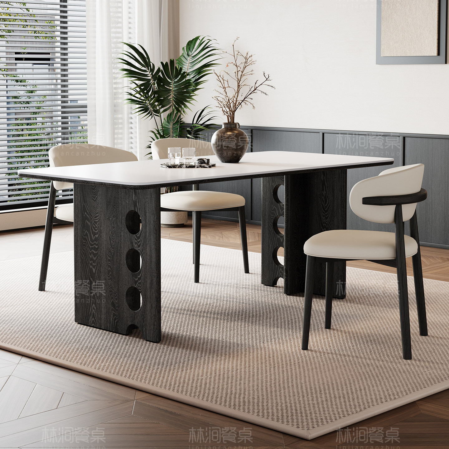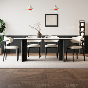 轻奢意式 极简小户型长方形家用复古风岩板餐桌椅组合实木吃饭桌子