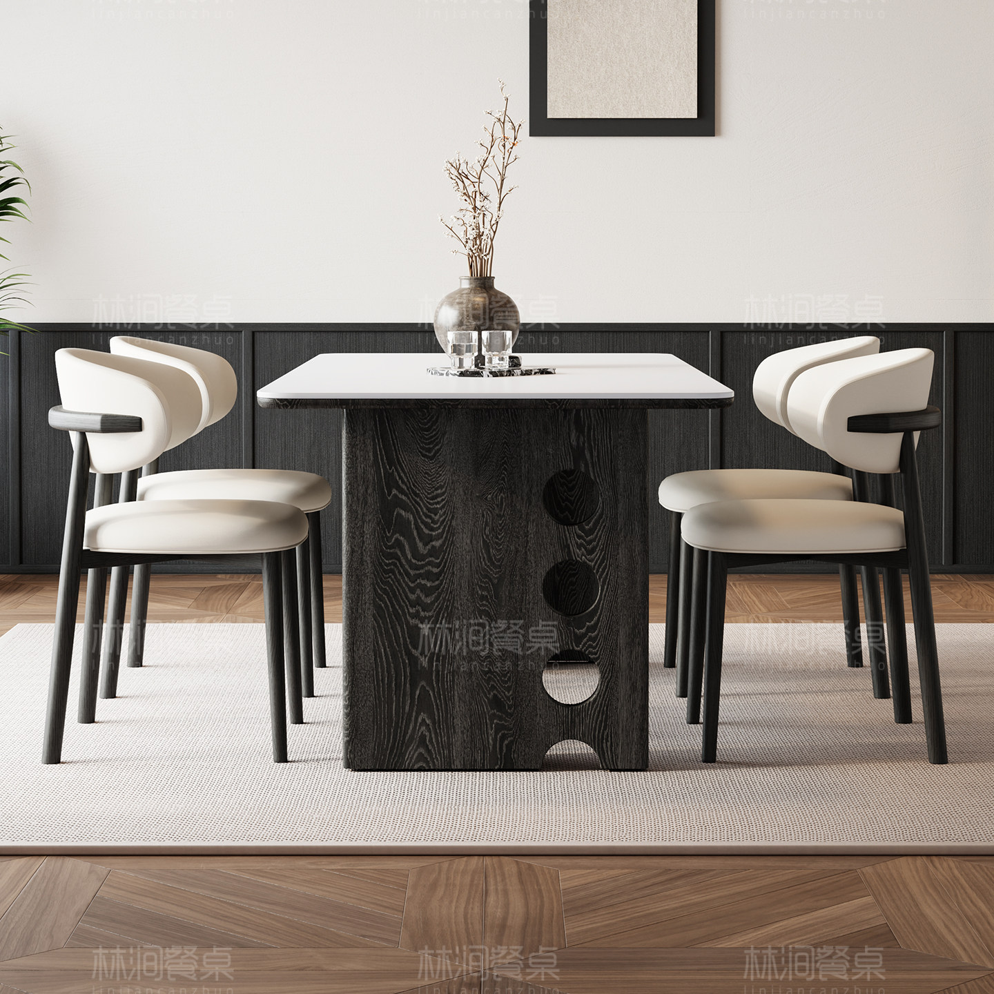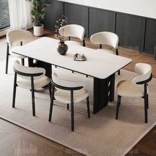 国补意式 极简小户型长方形家用客厅现代简约岩板餐桌轻奢餐椅组合
