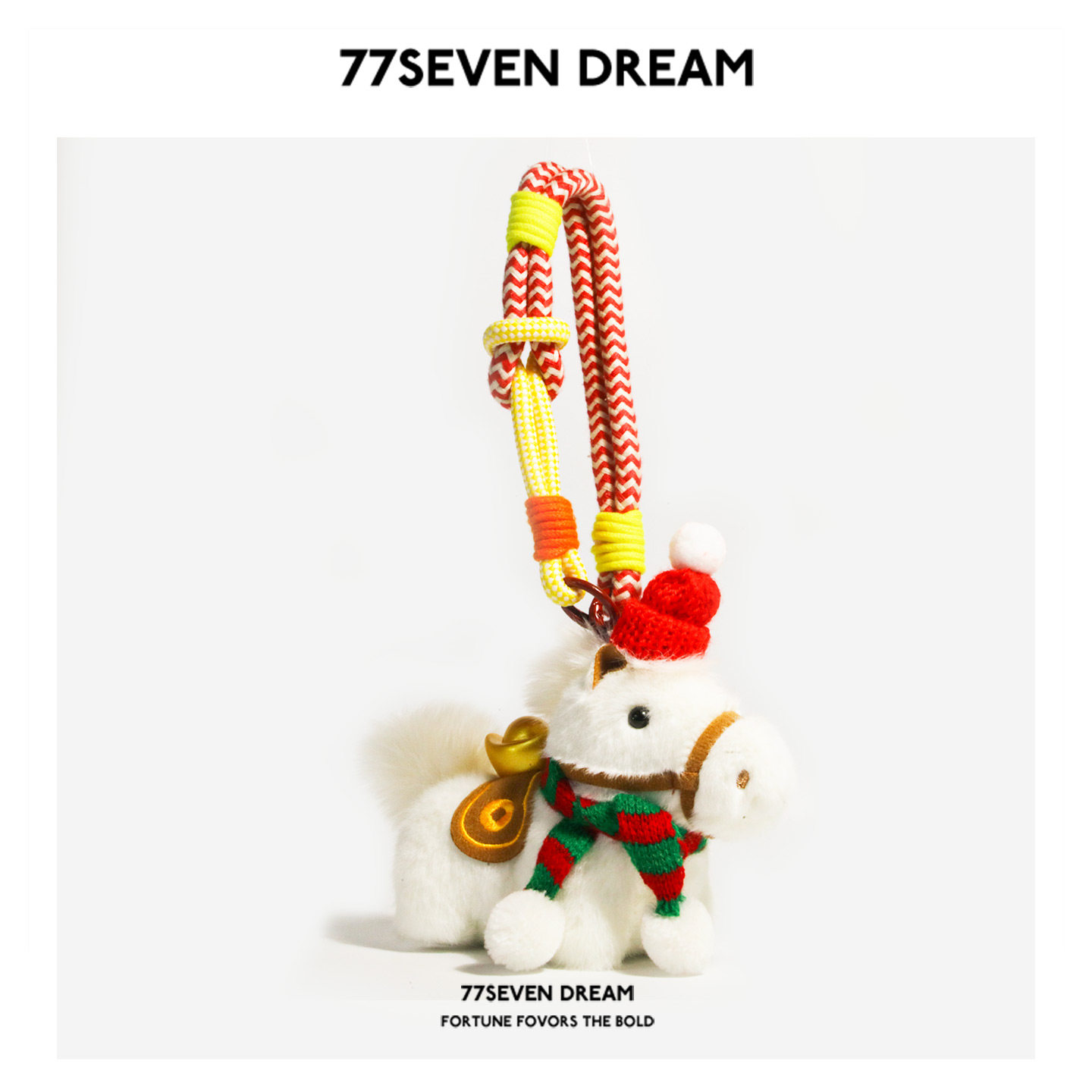 XIAOSIXI原创可爱卡通毛绒马上来财钥匙扣包包挂件车挂饰创意礼物