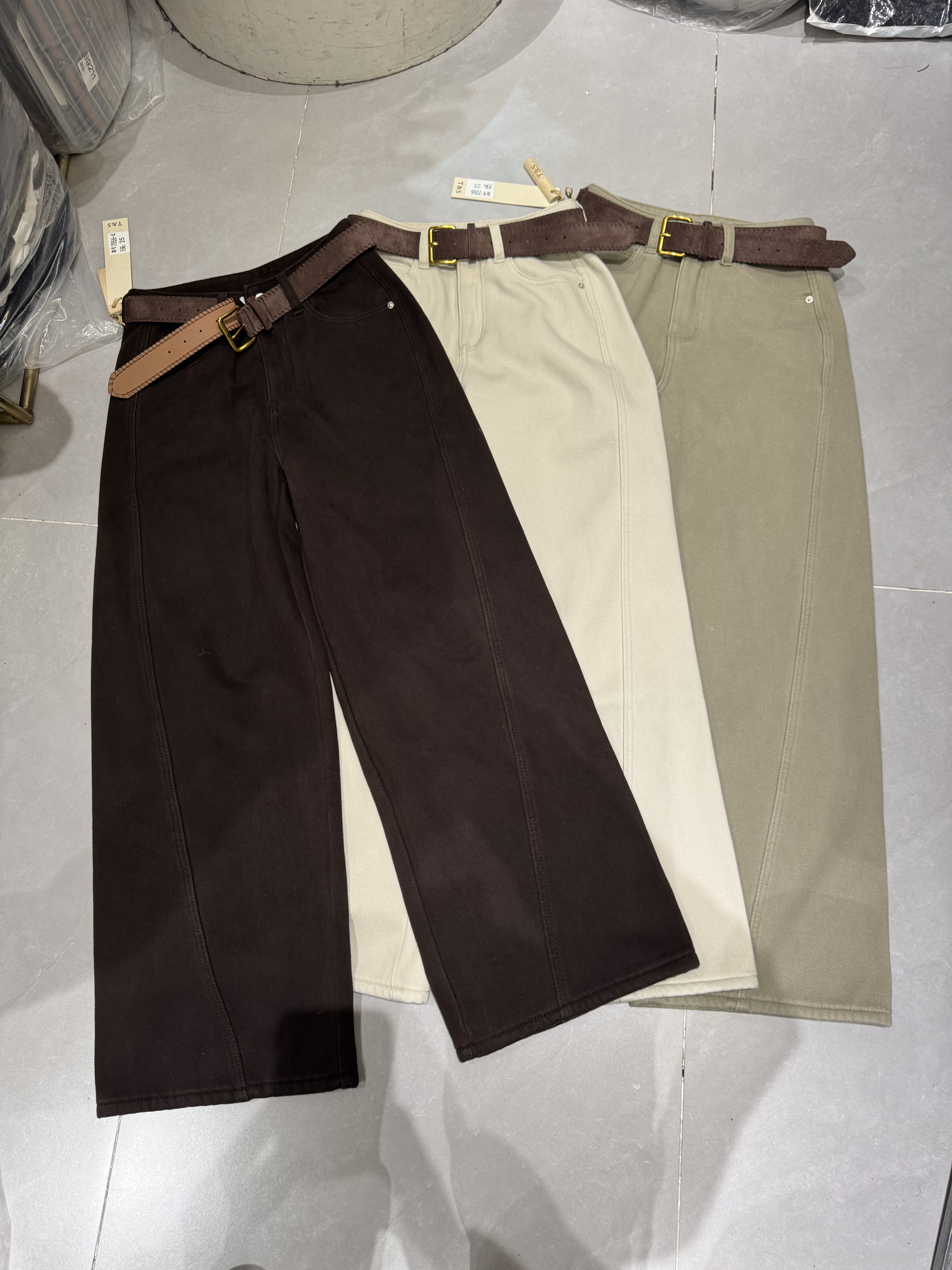 新款 2025冬季 韩版 高腰显瘦加厚绒阔腿牛仔裤 潮 TS7056 女直筒裤