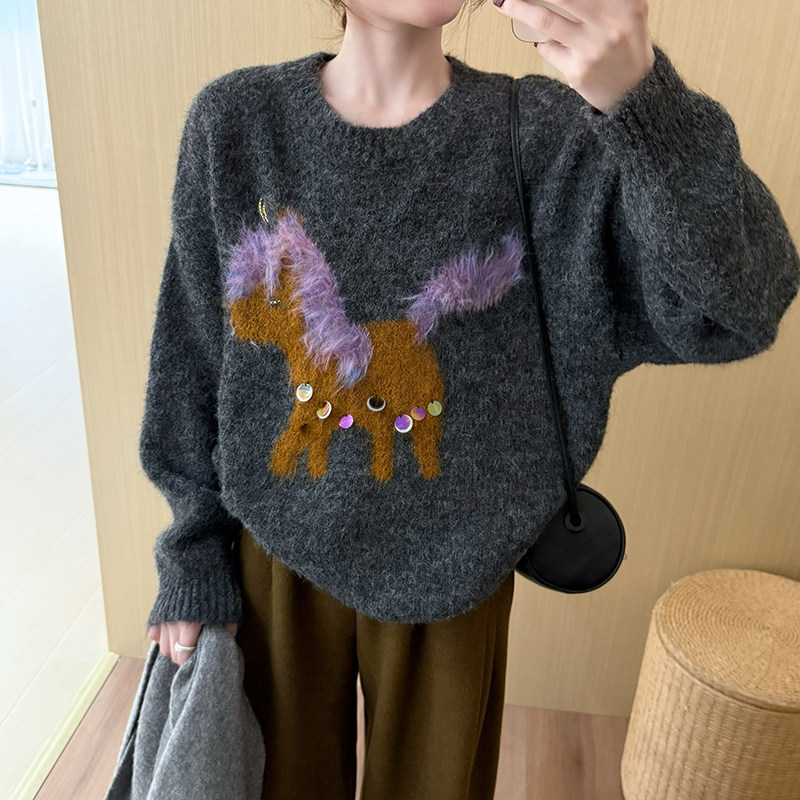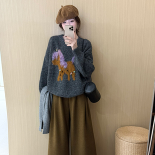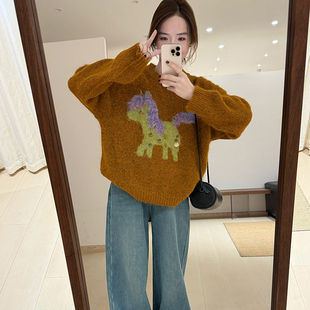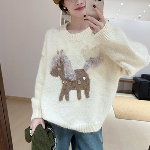 显瘦加厚上衣针织衫 话里时尚 韩版 新款 女 小马圆领套头毛衣2025冬季