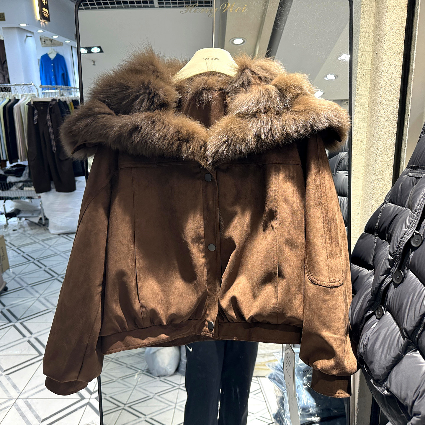 鹅绒羽绒服欧货冬正品 熹越5282 大盆狐狸毛领门禁毛轻奢洋气短装