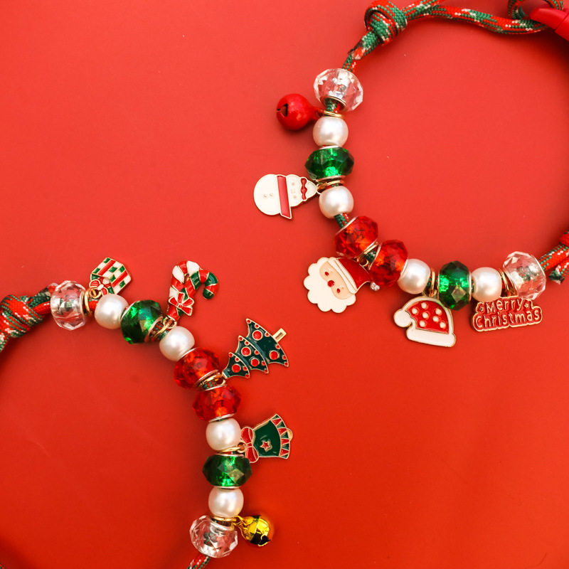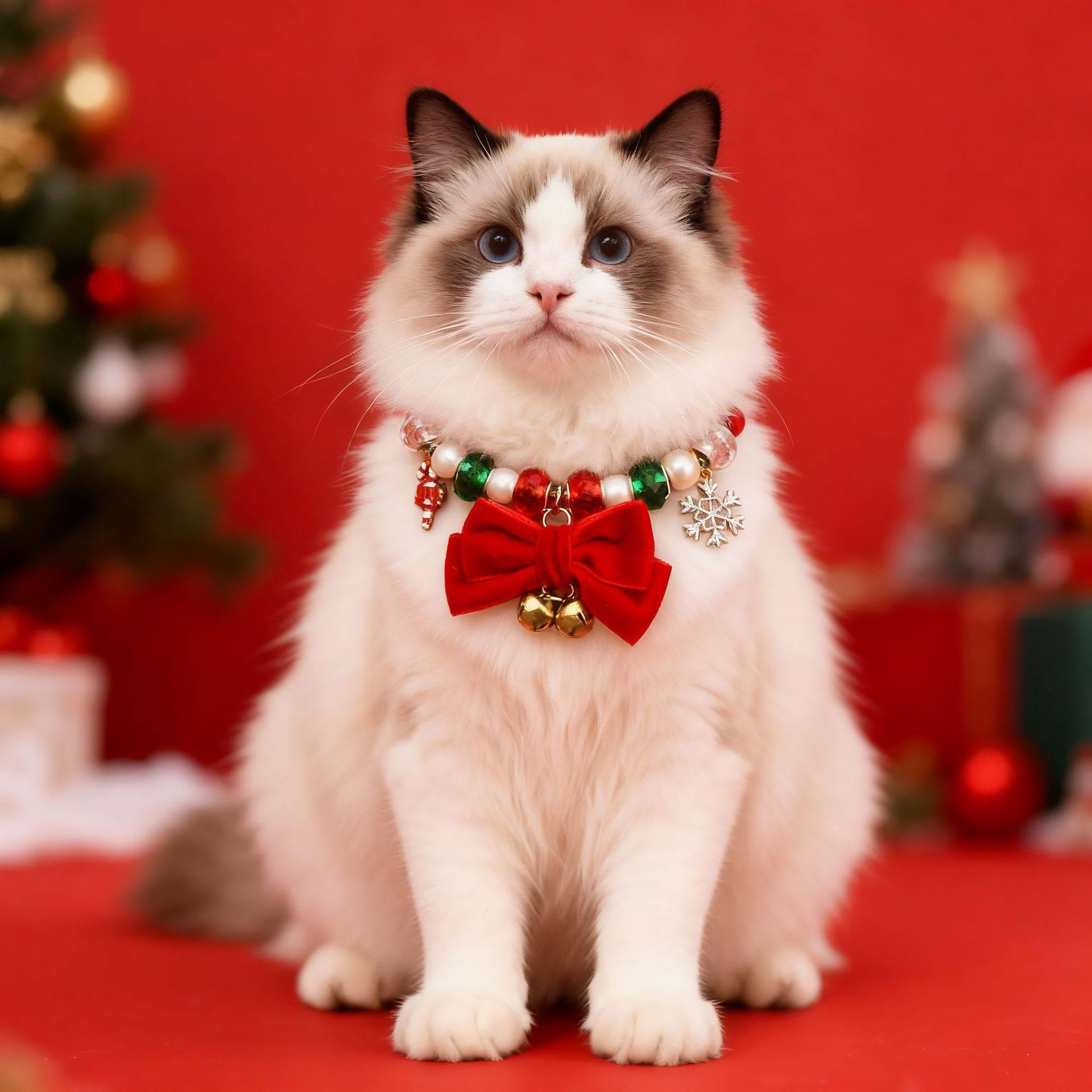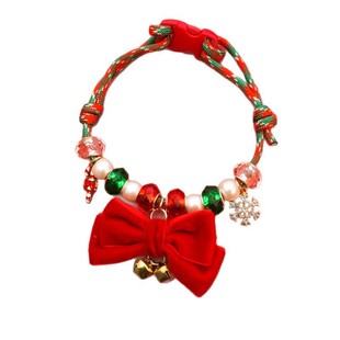 宠物圣诞节日卡通项圈猫咪狗狗项链红色可爱装 饰品串珠铃铛蝴蝶结