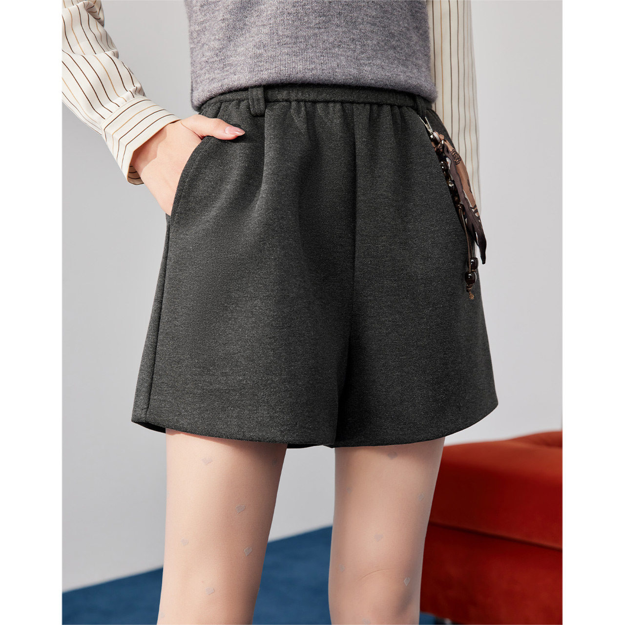 爱依服裤 简约休闲通勤气质百搭显腿长短裤 子2025冬季 韩版 新款 IEF