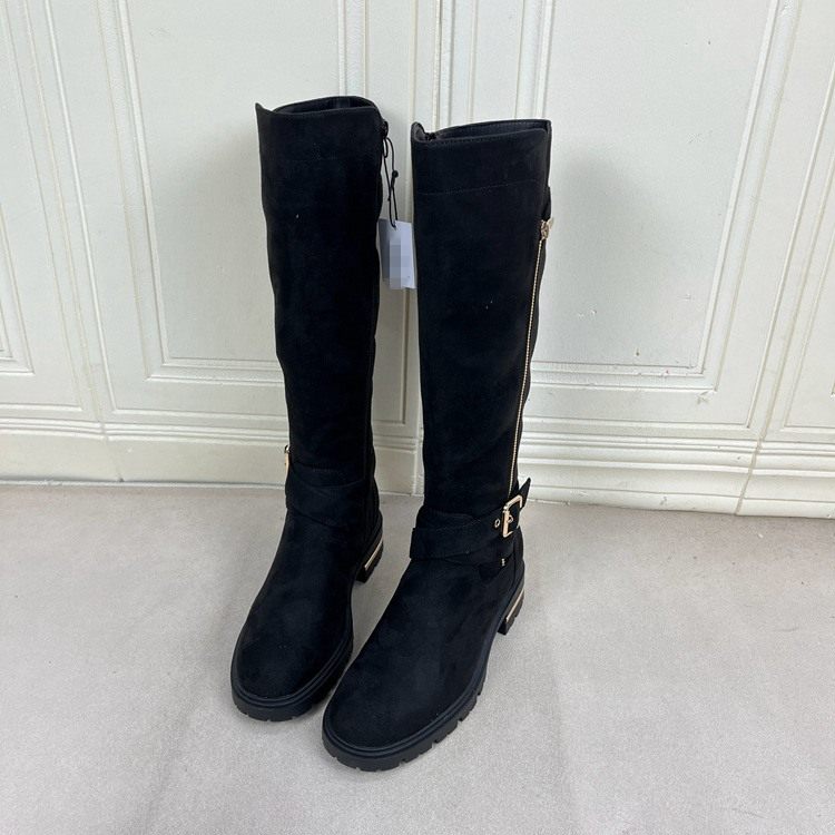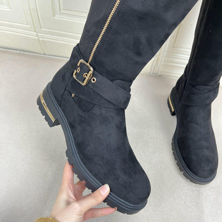 靴皮靴 时装 吴宣仪天美意千金靴复古厚底骑士靴加绒长靴女鞋 子新款