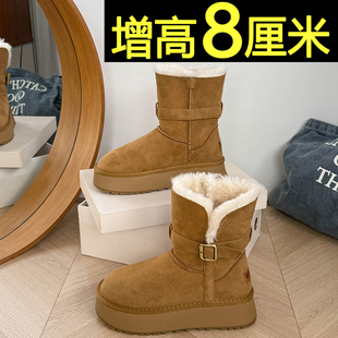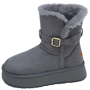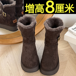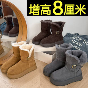 厚底棉靴 加绒加厚保暖面包棉鞋 内增高东北雪地靴女2025新款 冬季