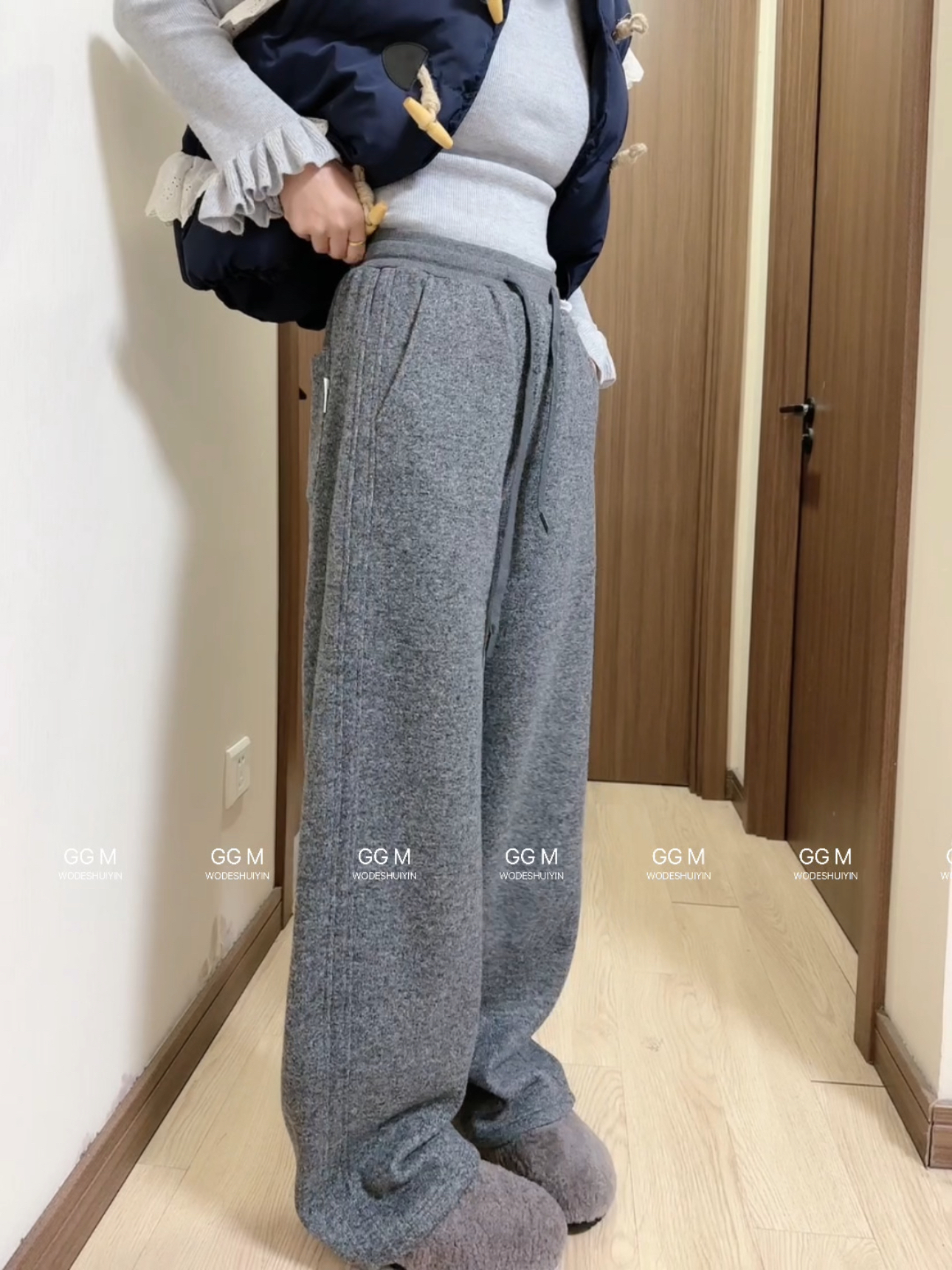 拖地裤 高腰阔腿直筒弹力休闲裤 冬季 一上七6901灰色弯刀加绒糯米裤