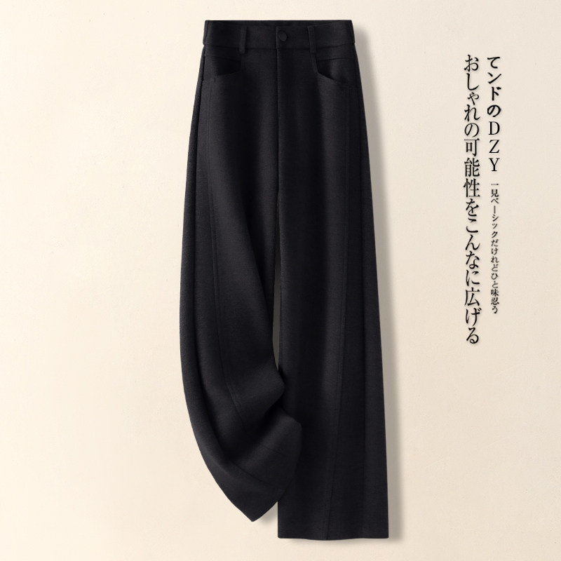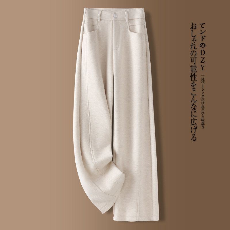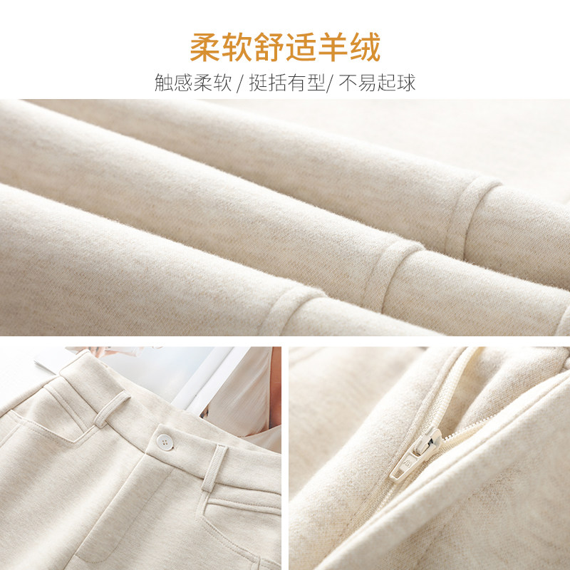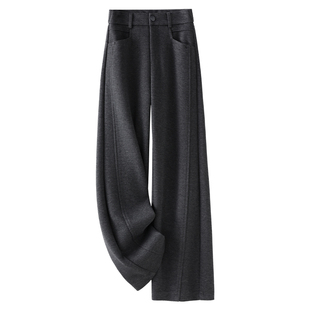 加绒加厚羊毛呢直筒裤 灰色羊绒阔腿裤 休闲糯米裤 2025新款 女秋冬季