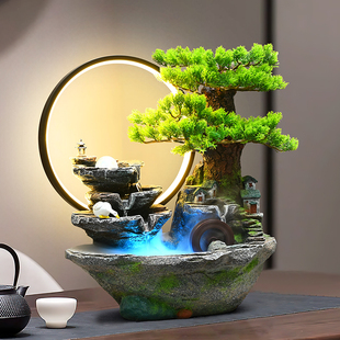 假山流水喷泉客厅循环水景观招财风水轮办公室生财桌面装 饰品摆件