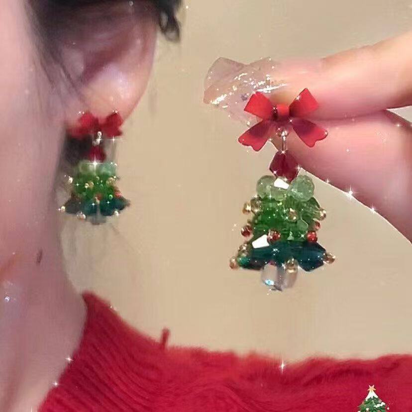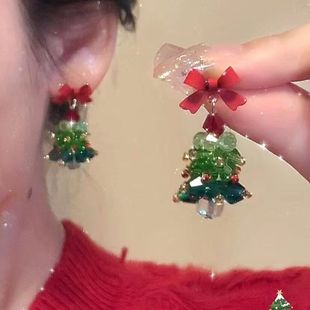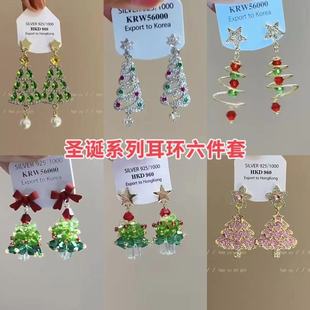 彩色圣诞树耳环女满钻粉色可爱雪人高颜值百搭耳钉小众感精致星星