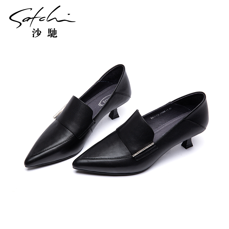 时尚 舒适百搭通勤工作鞋 尖头低跟职业单鞋 新款 2025秋季 沙驰女鞋