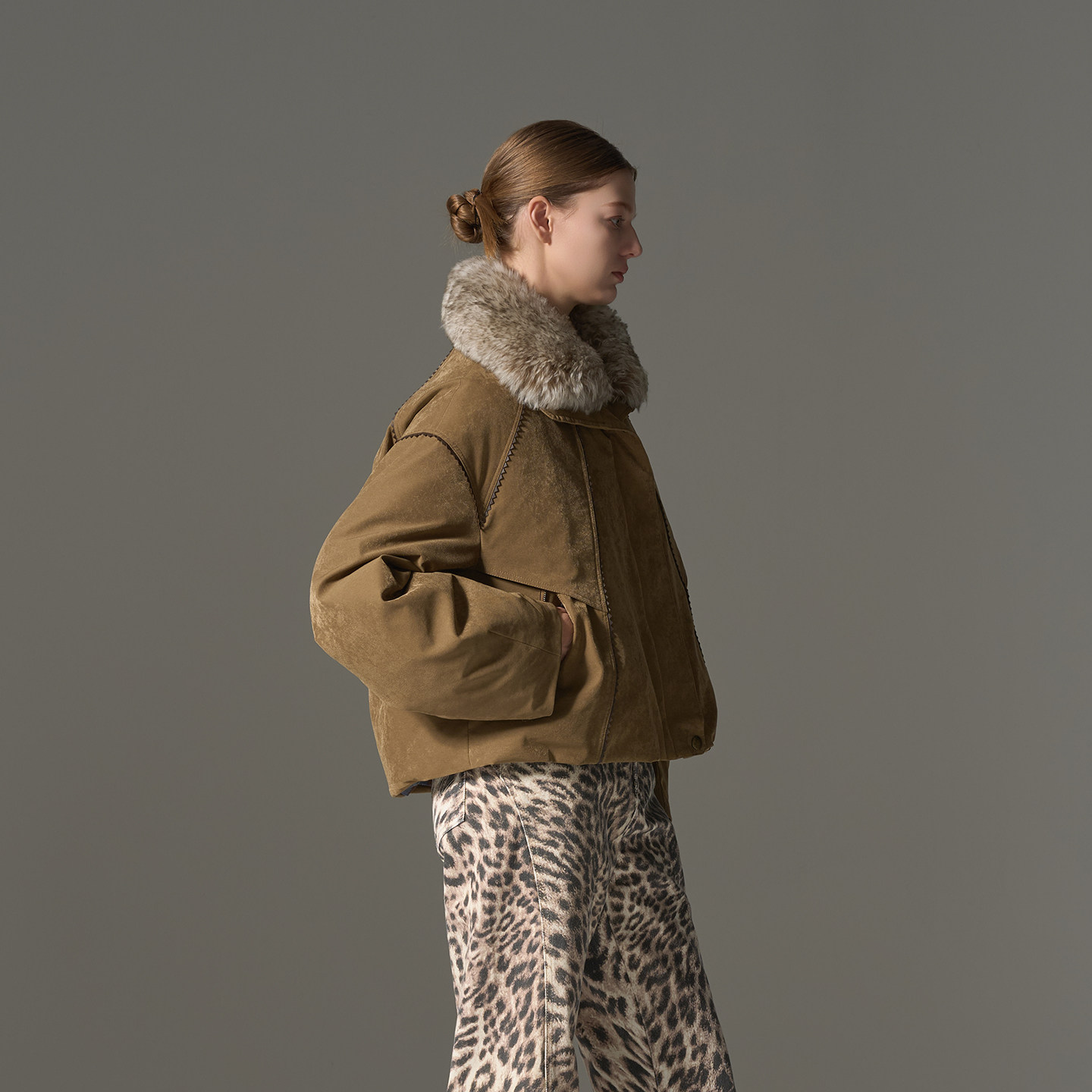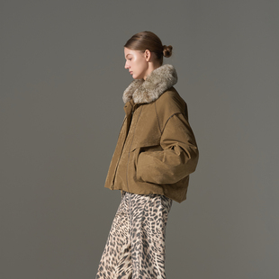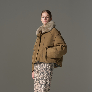 原创设计_羊皮毛一体可脱卸毛领90鹅绒羽绒派克服 限量特价