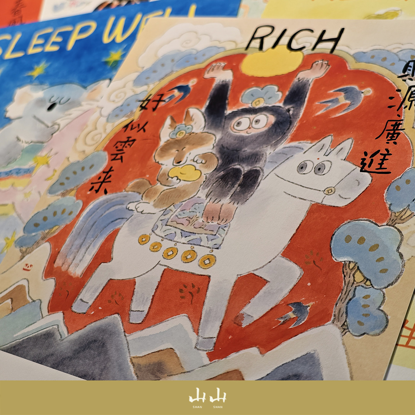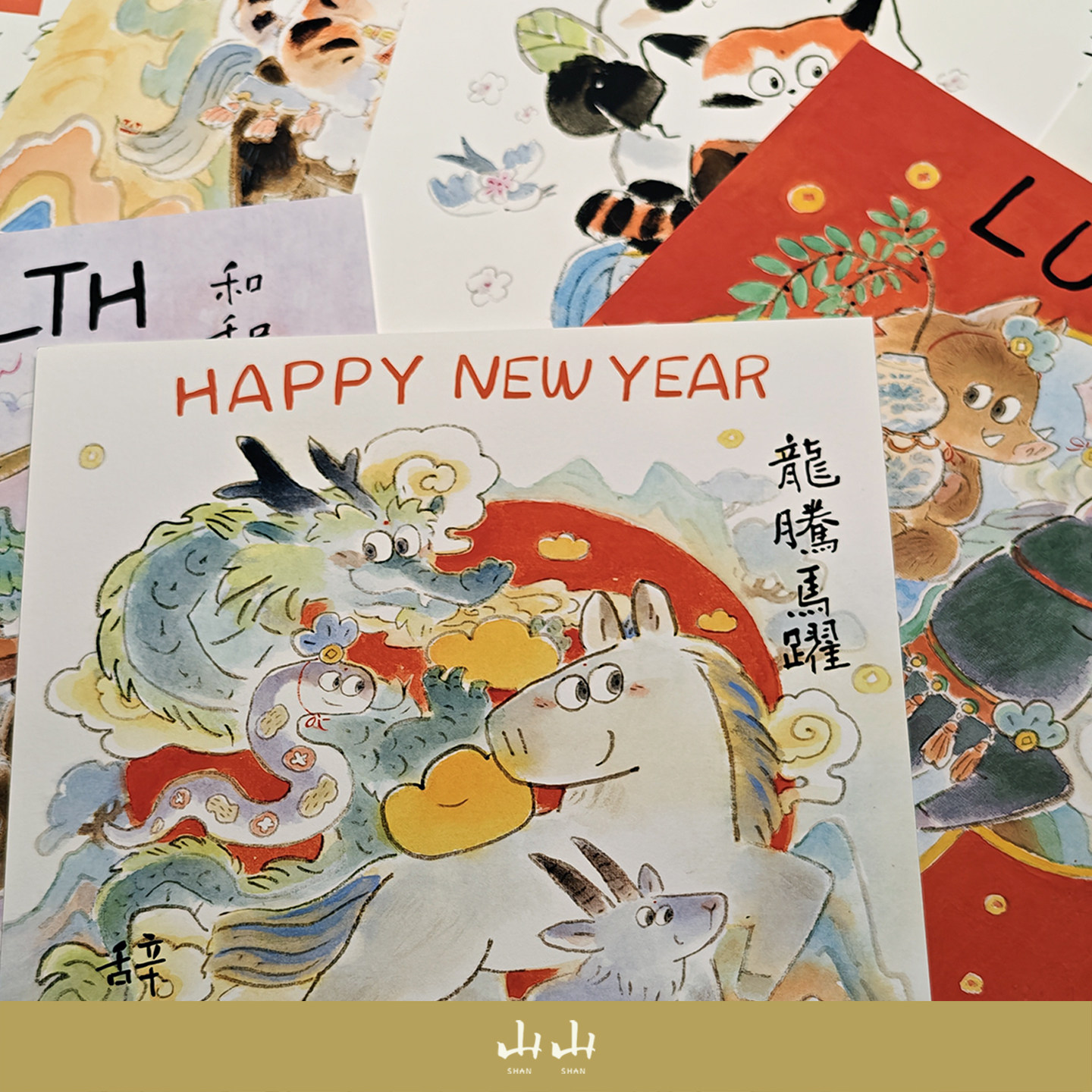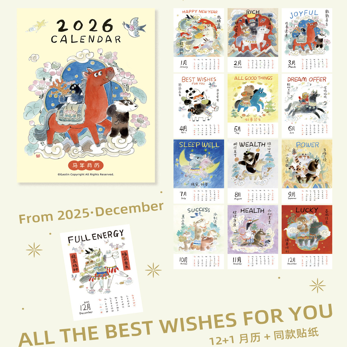 山山空间_原创2026新春马年国画风插图月历13幅乔迁家居工位装 饰