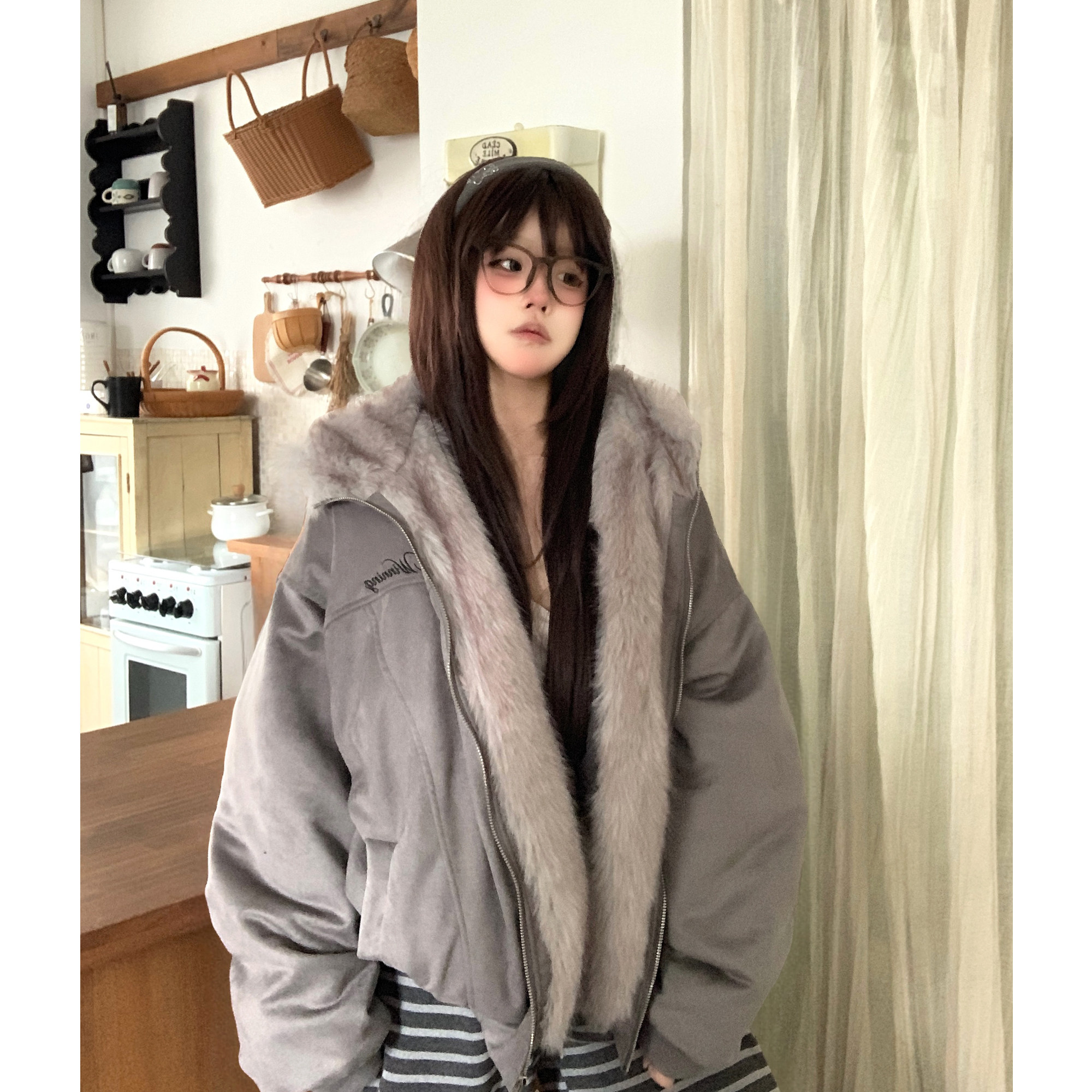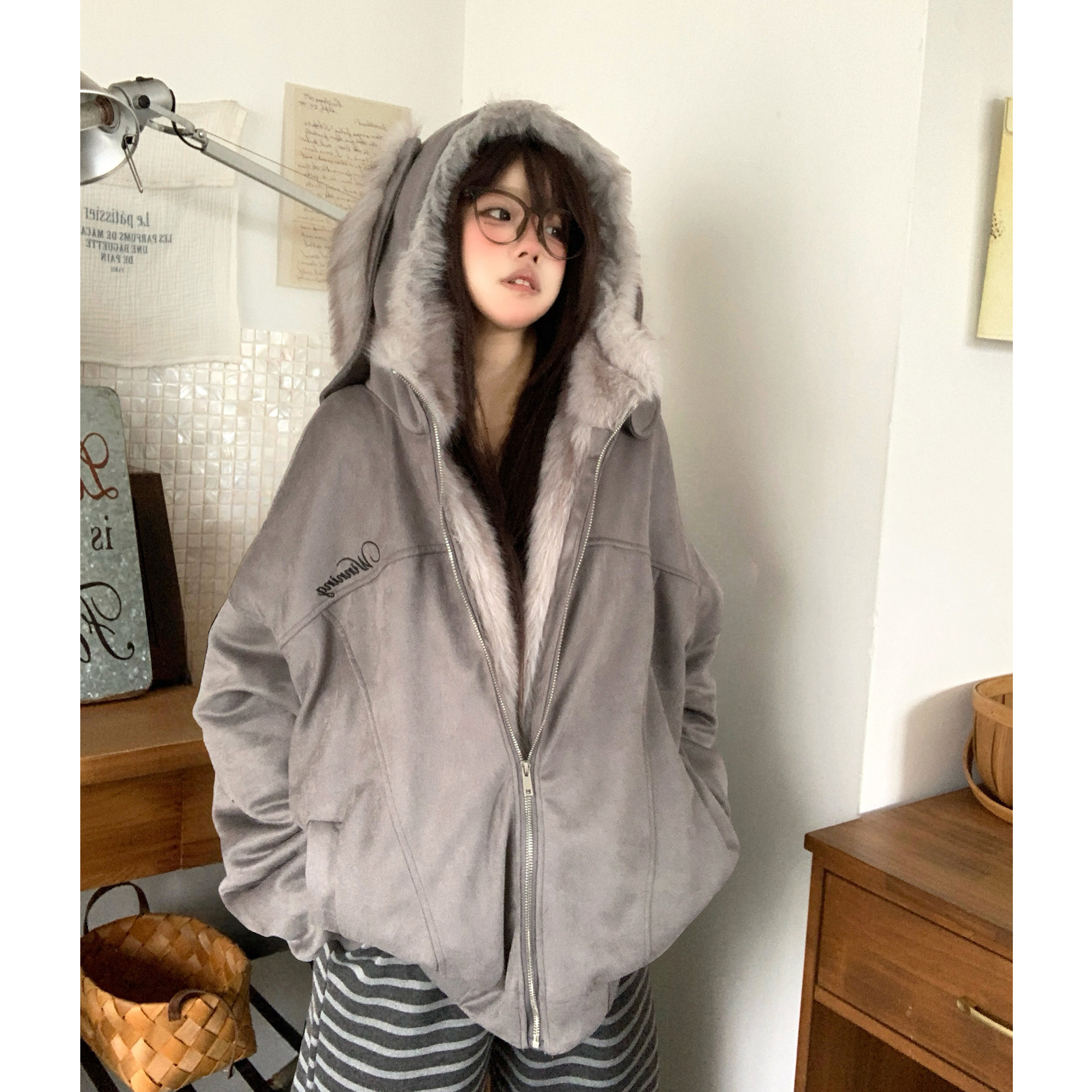TUDOU土豆猫甜酷连帽座山雕外套女宽松加厚2025新款 棉衣棉服 冬季