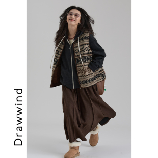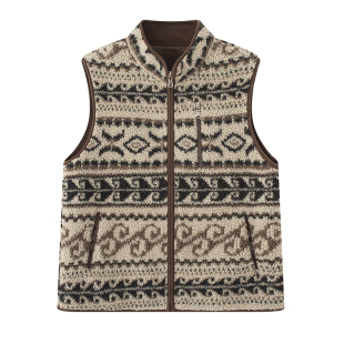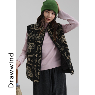 画风drawwind费尔岛复古提花马甲女2025春季 仿羊羔绒立领背心 新款