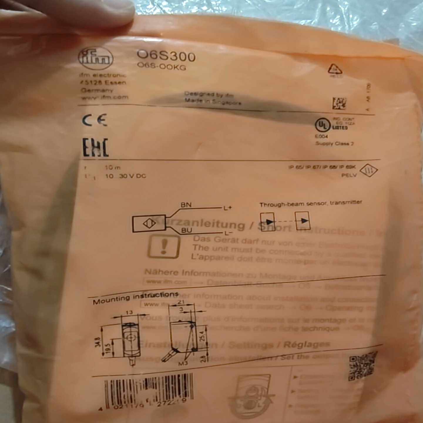 询价德国IFM易福门O6S300对射光电开关传感器发射0