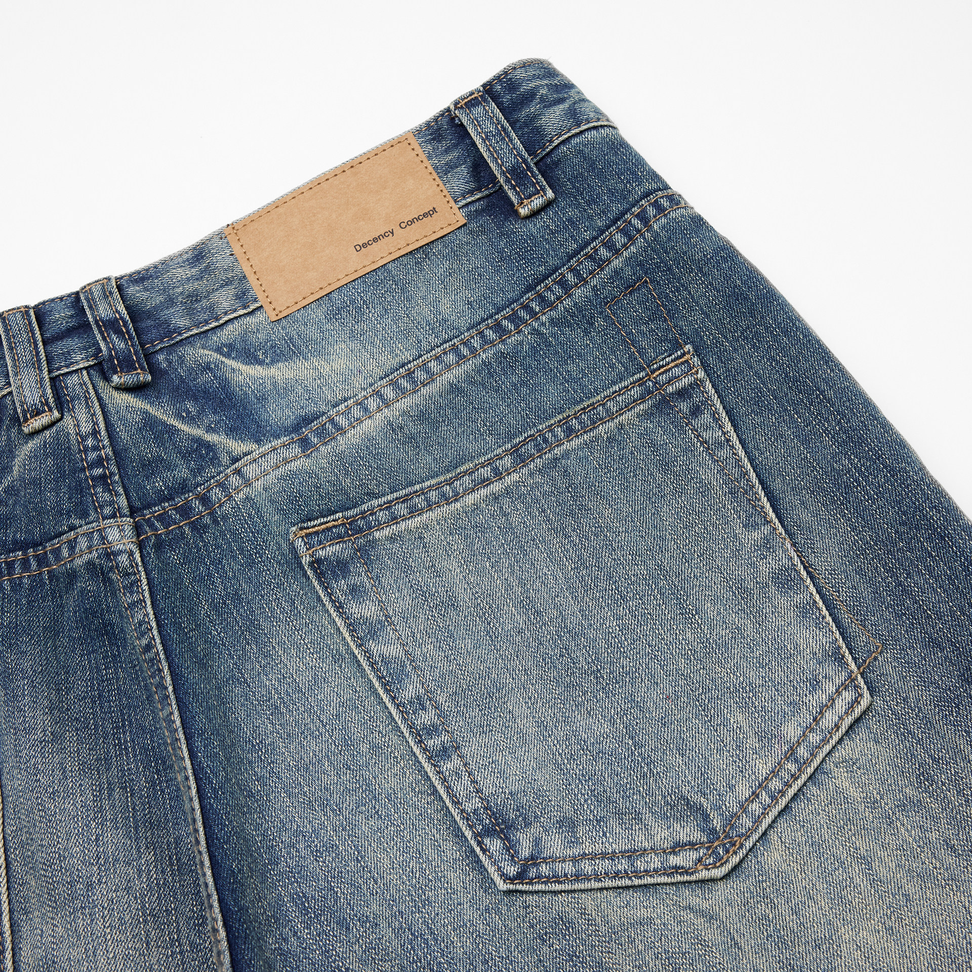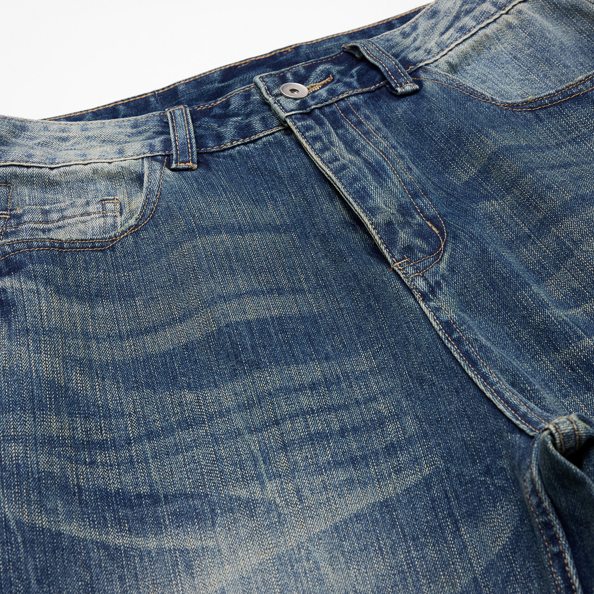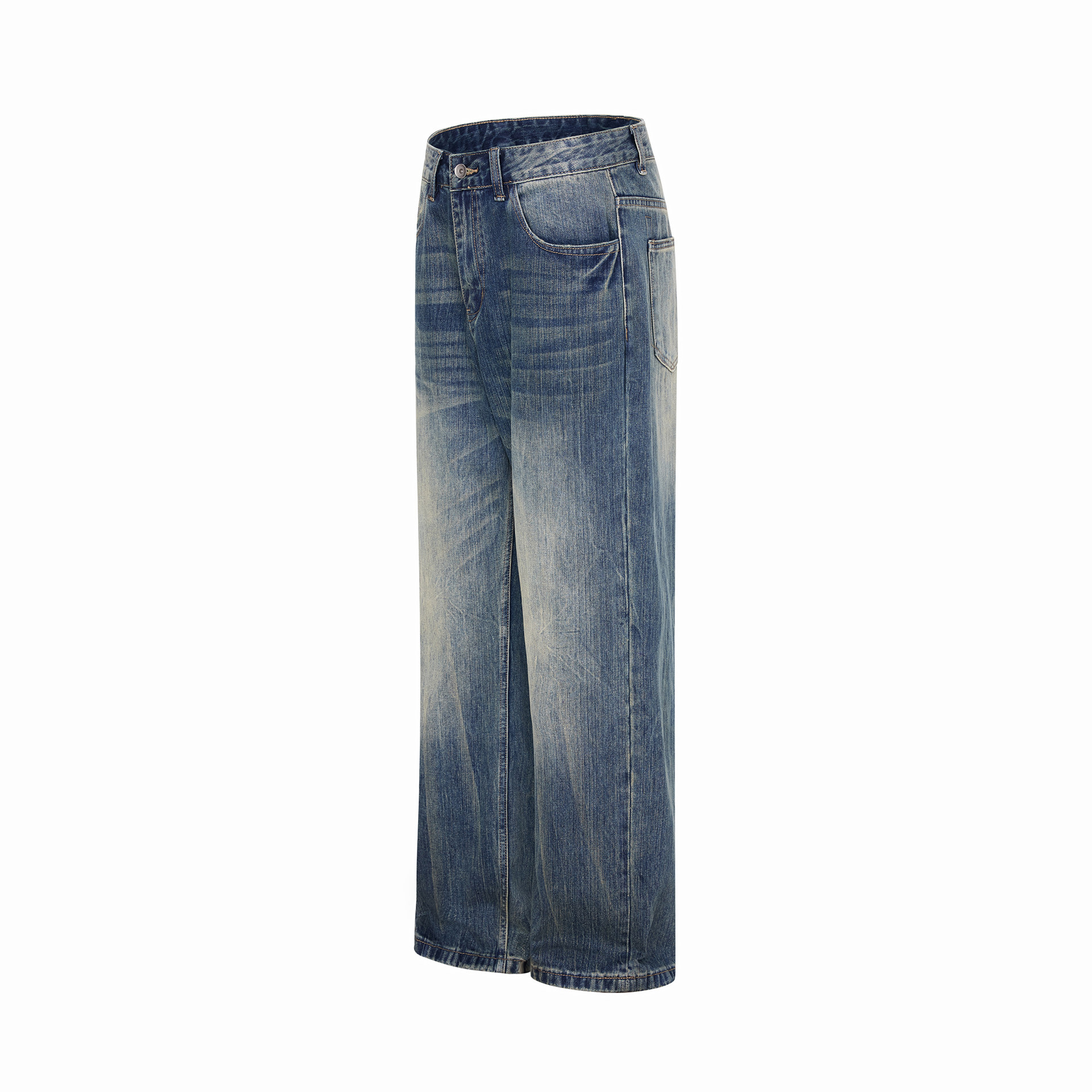 男宽松阔腿休闲长裤 JFU潮牌 复古水洗百搭直筒牛仔裤 美式 秋冬季