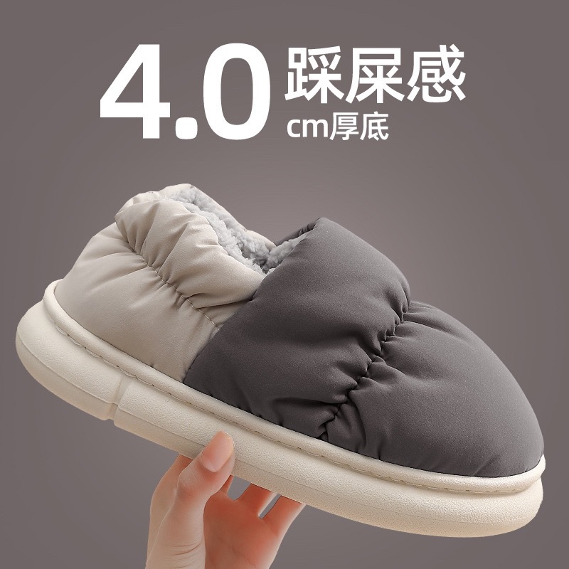 室内包跟保暖厚底居家用防水棉鞋 冬季 女可外穿 羽绒棉拖鞋 男士