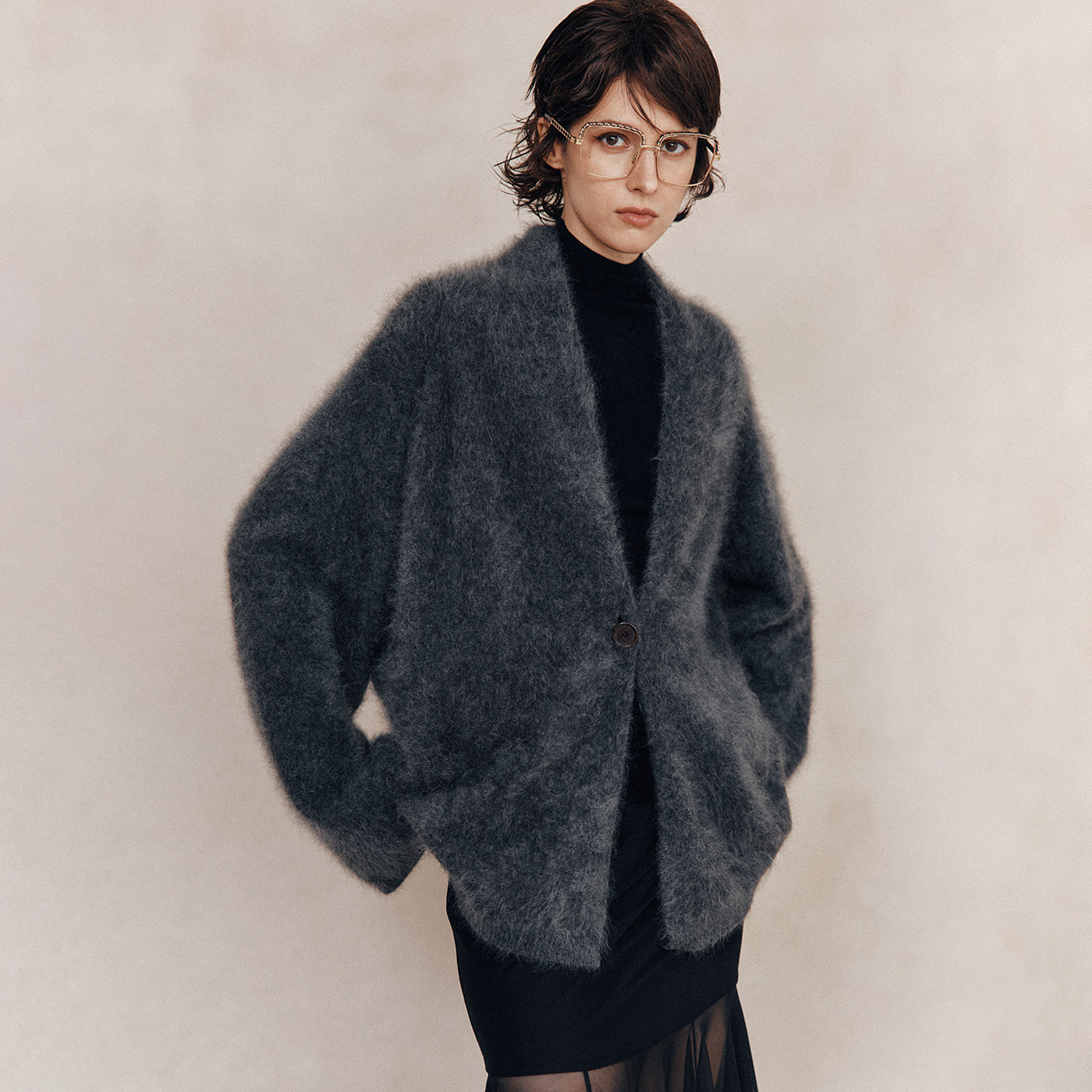 纸片人百搭实用显瘦慵懒针织开衫 1OO%山羊绒拉绒 奢柔纯享