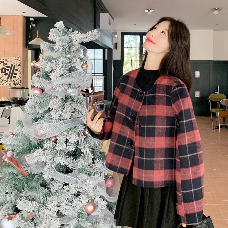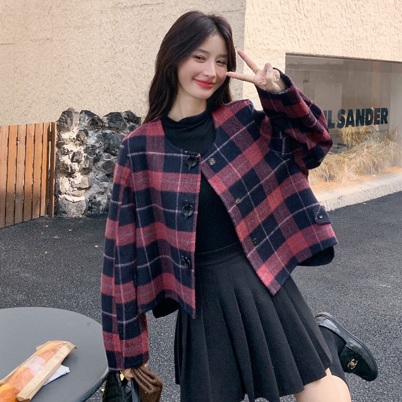 西装 微胖mm秋冬宽松正肩长短款 毛呢大衣外套 百分百女装 DM100大码