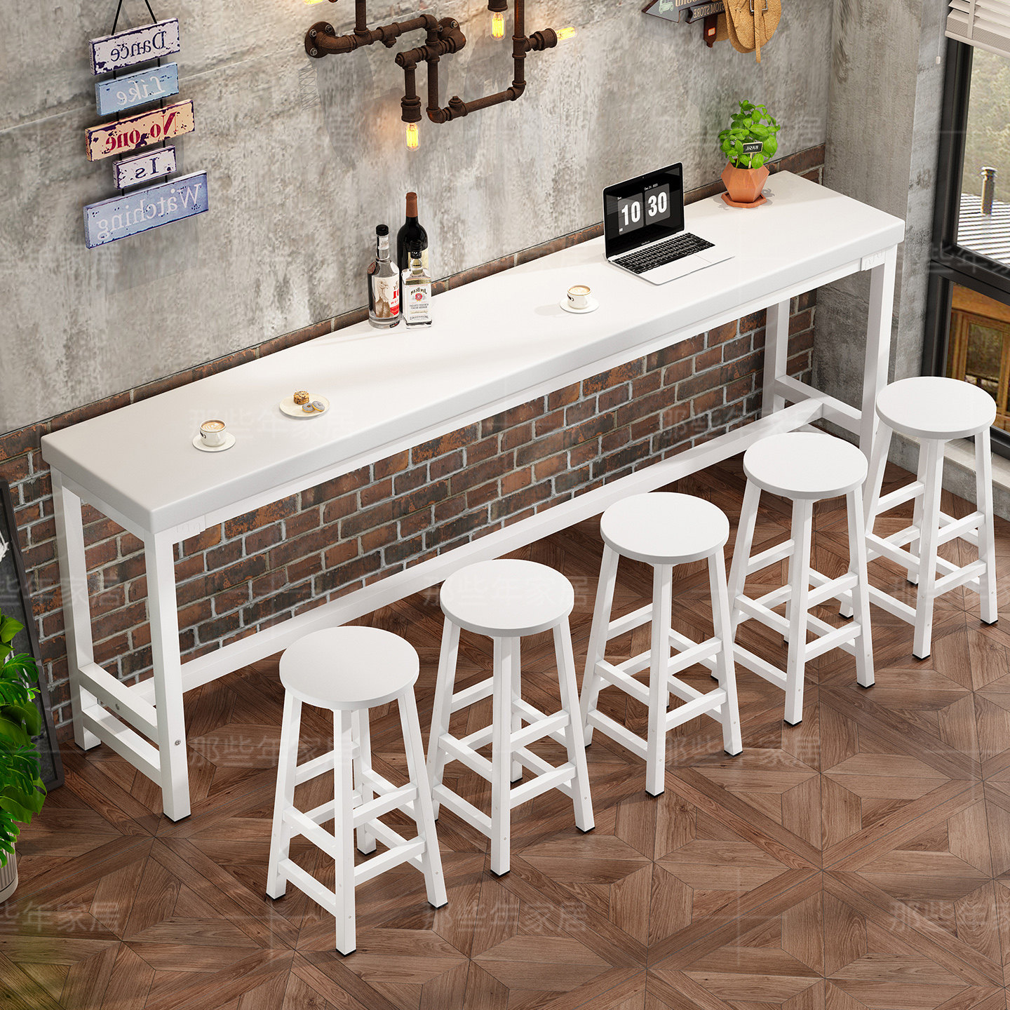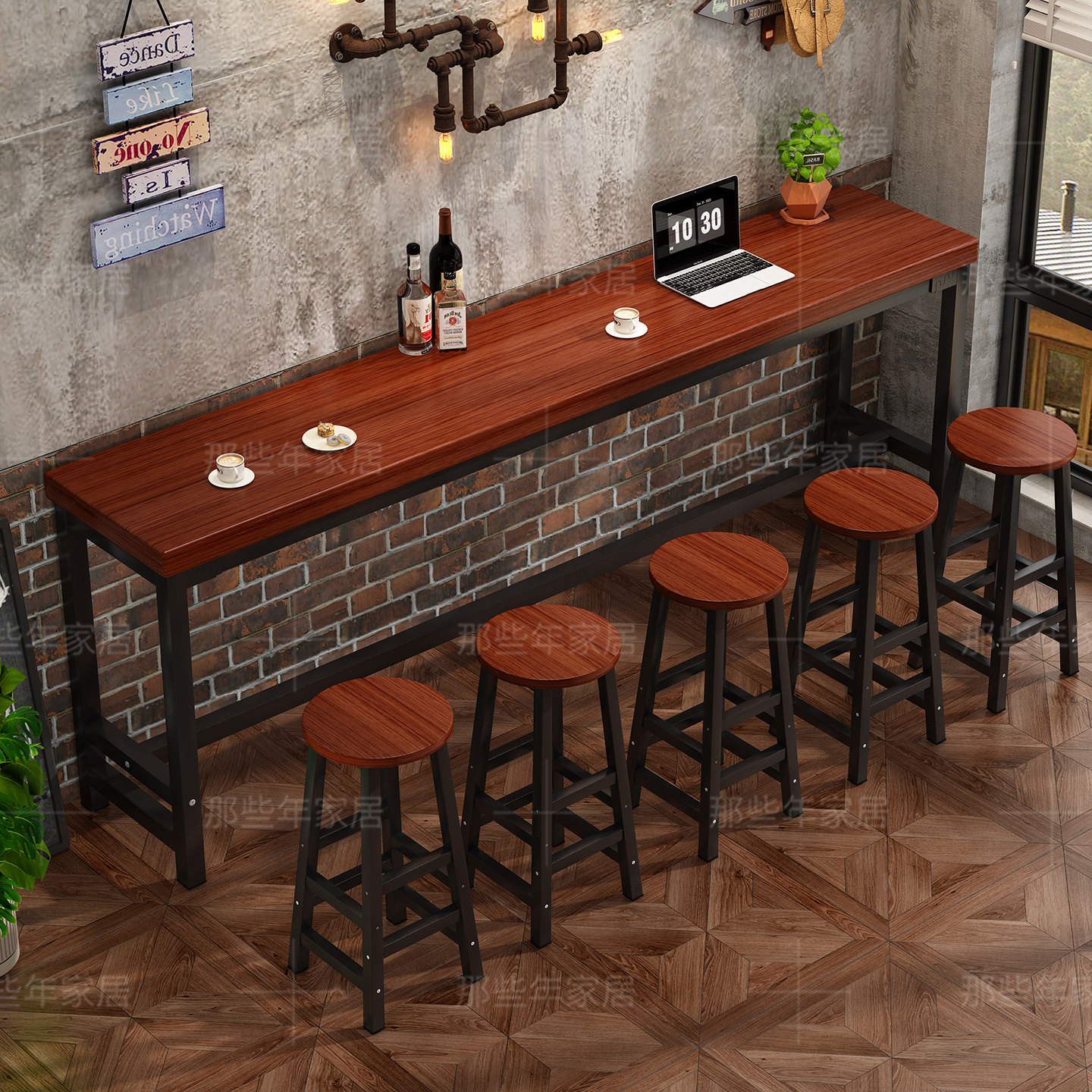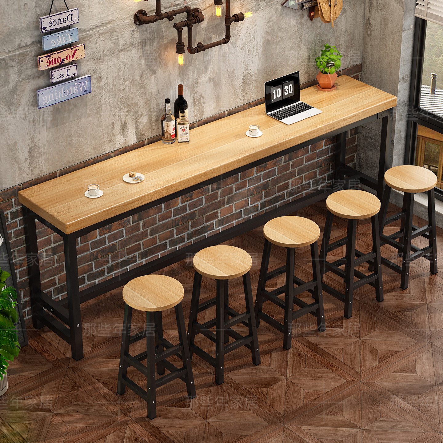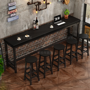 实木阳台吧台桌靠墙长条家用高脚桌商用靠窗酒吧桌奶茶店桌椅组合