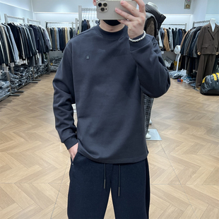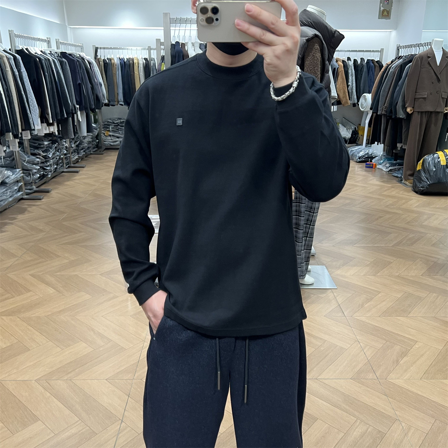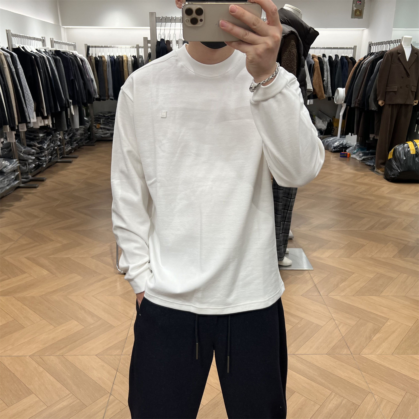 宽松通勤打底衫 T恤男秋冬美式 潮 标亲肤软糯加厚磨毛长袖 简约小袖