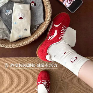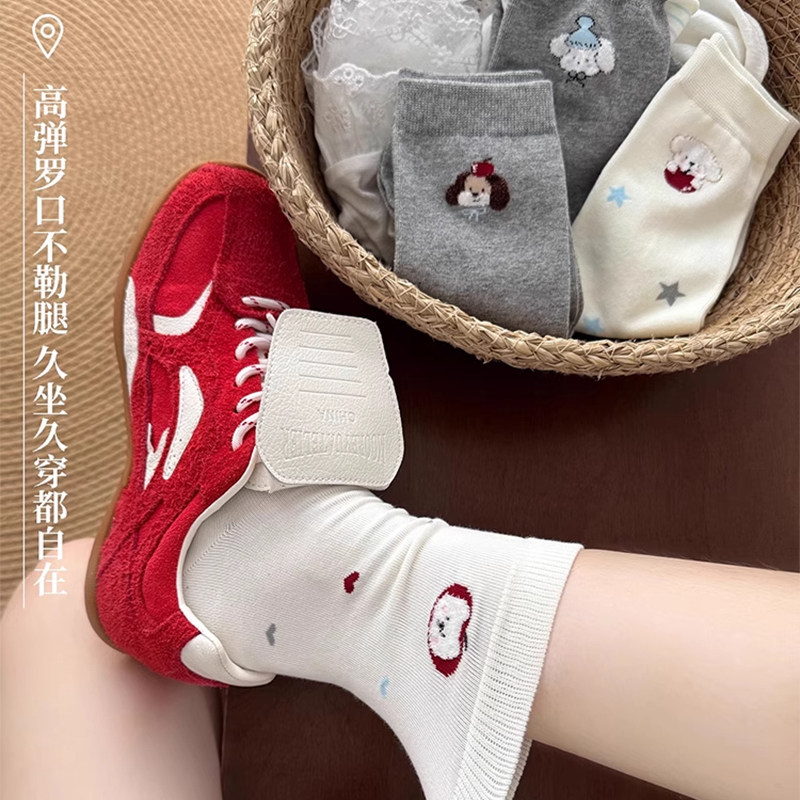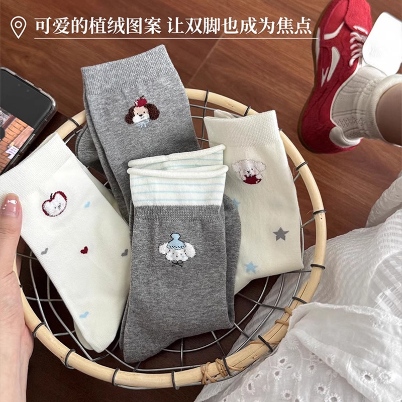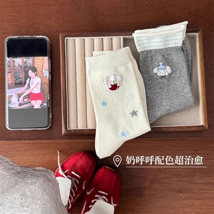 可爱袜子女款 ins潮流日系卡通学院风长袜秋天 纯色中筒棉袜秋冬款
