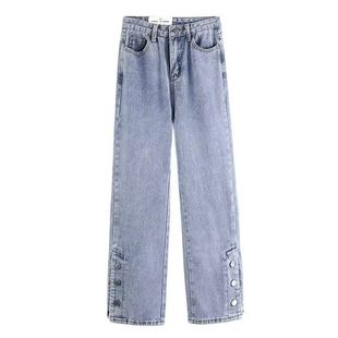 女秋冬新加绒复古显瘦宽松长裤 升级 阔腿牛仔裤 窄版 子 两个长度
