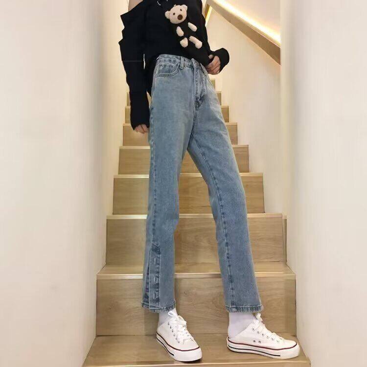 女高腰显瘦直筒气质休闲喇叭裤 复古微喇牛仔裤 摇摆伦巴 pusumede