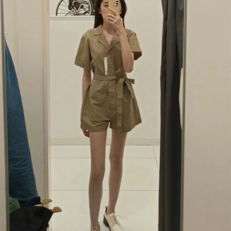 短裤 日单2023夏季 风麻混纺连体裤 休闲复古高腰显瘦工装 455670 女装