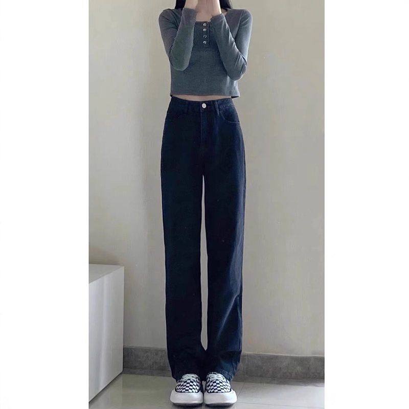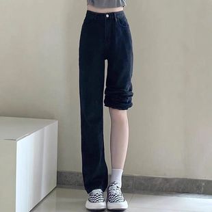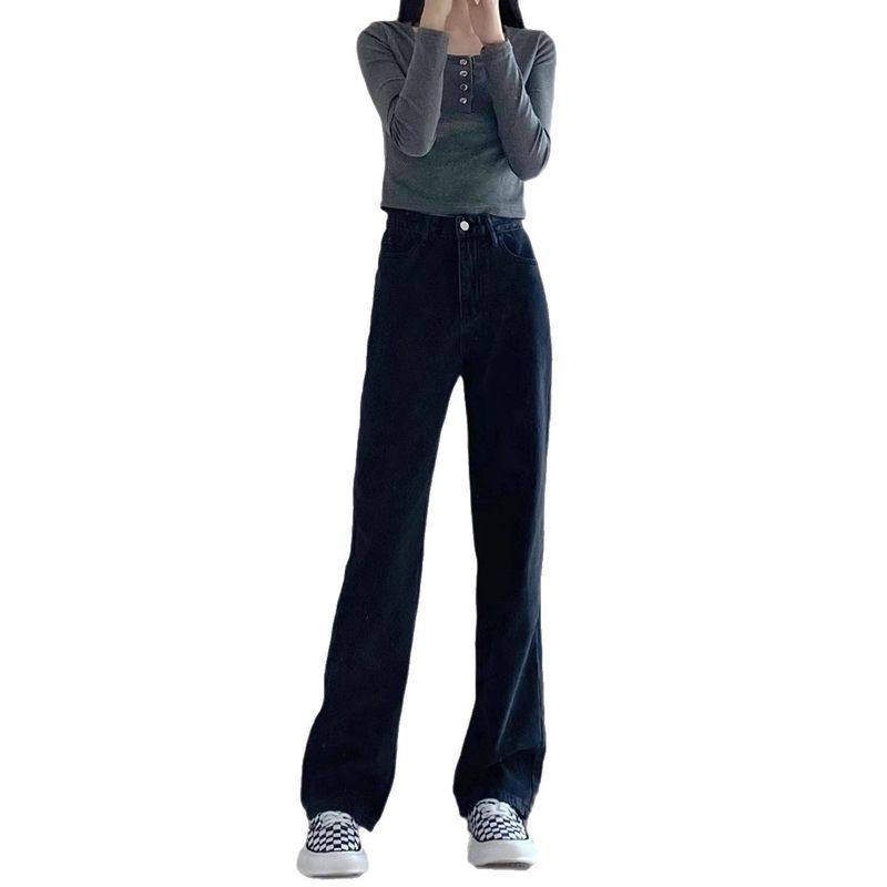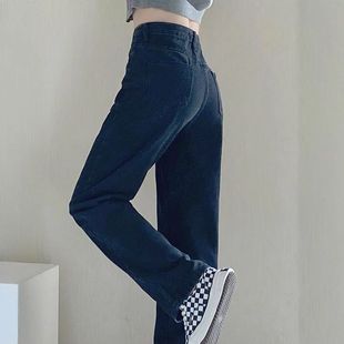 老爹女显瘦直筒高腰百搭ins裤 宽松阔腿韩版 潮复古黑色 秋季 牛仔裤