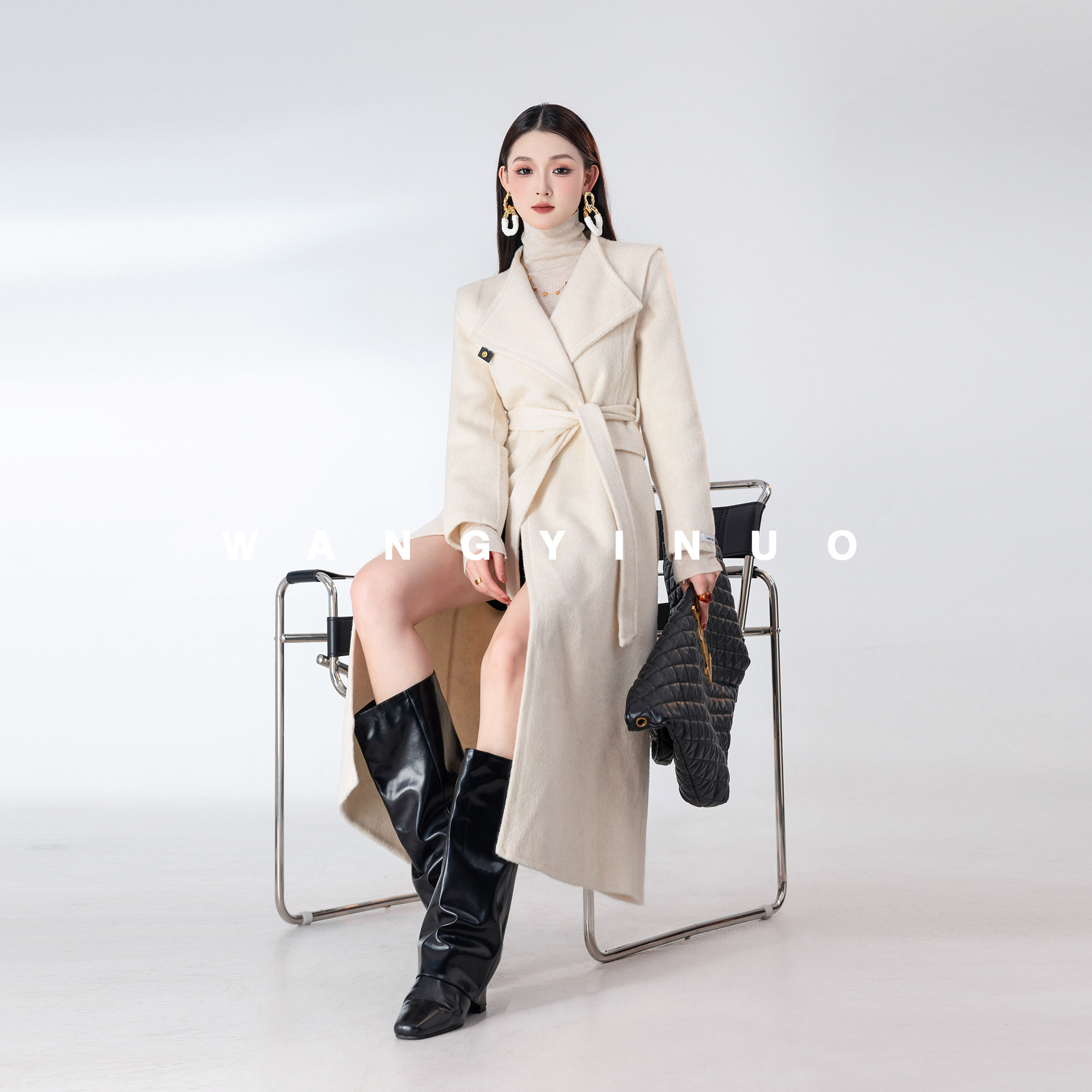 翻领百搭显瘦保暖长款 MD依诺 款 2025冬季 系带羊毛外套 帕顿庄园