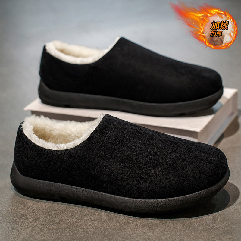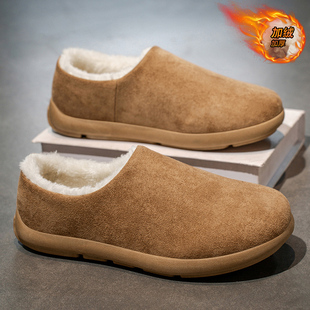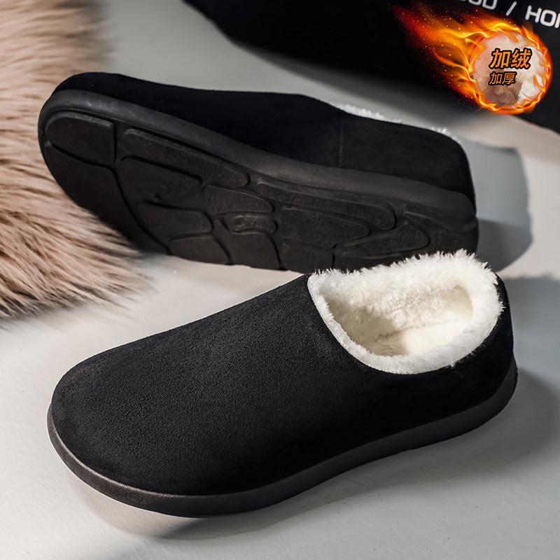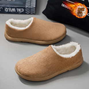 居家室内保暖外穿加绒加厚无后跟半拖休闲棉鞋 冬季 男款 包头棉拖鞋