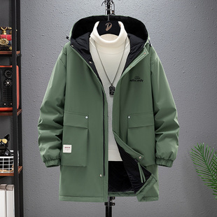 宸轩大码 风衣加肥加大胖子宽松休闲连帽加绒简约流行外套 男中长款