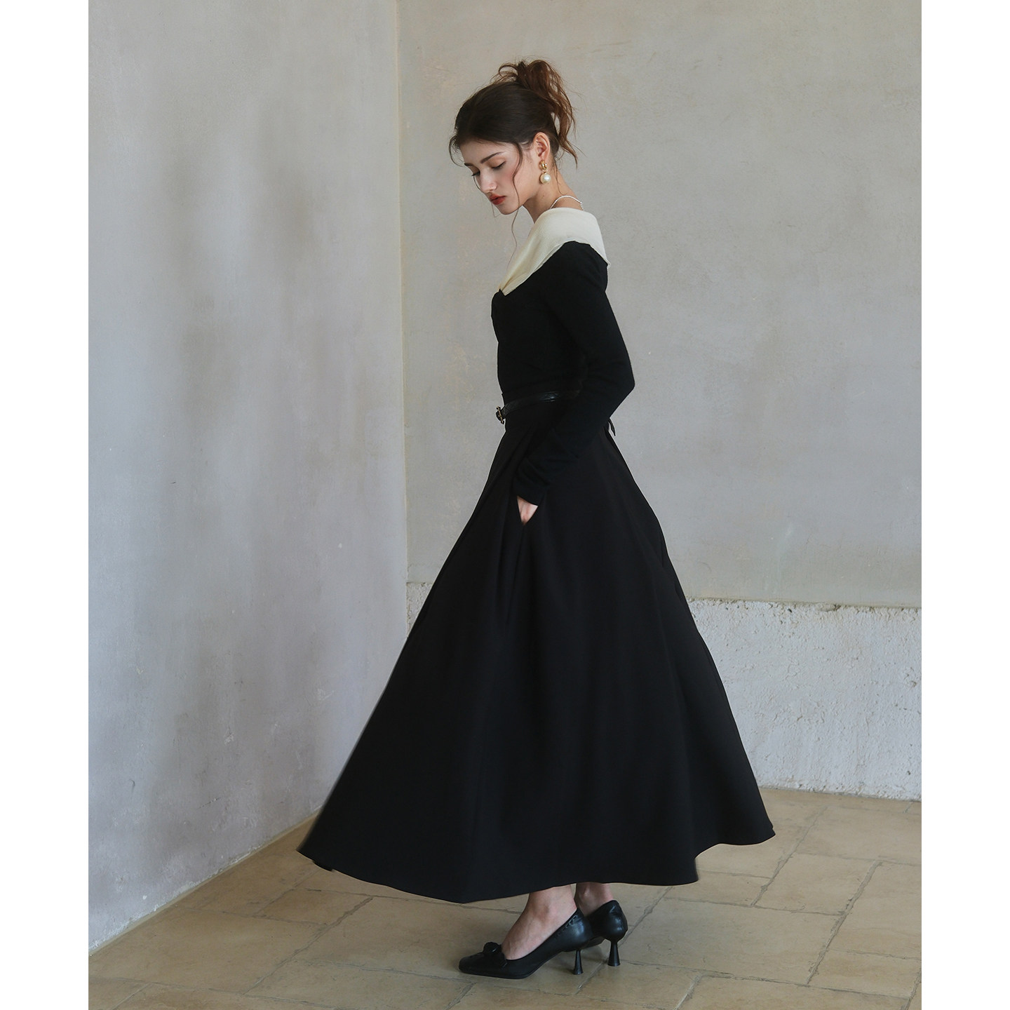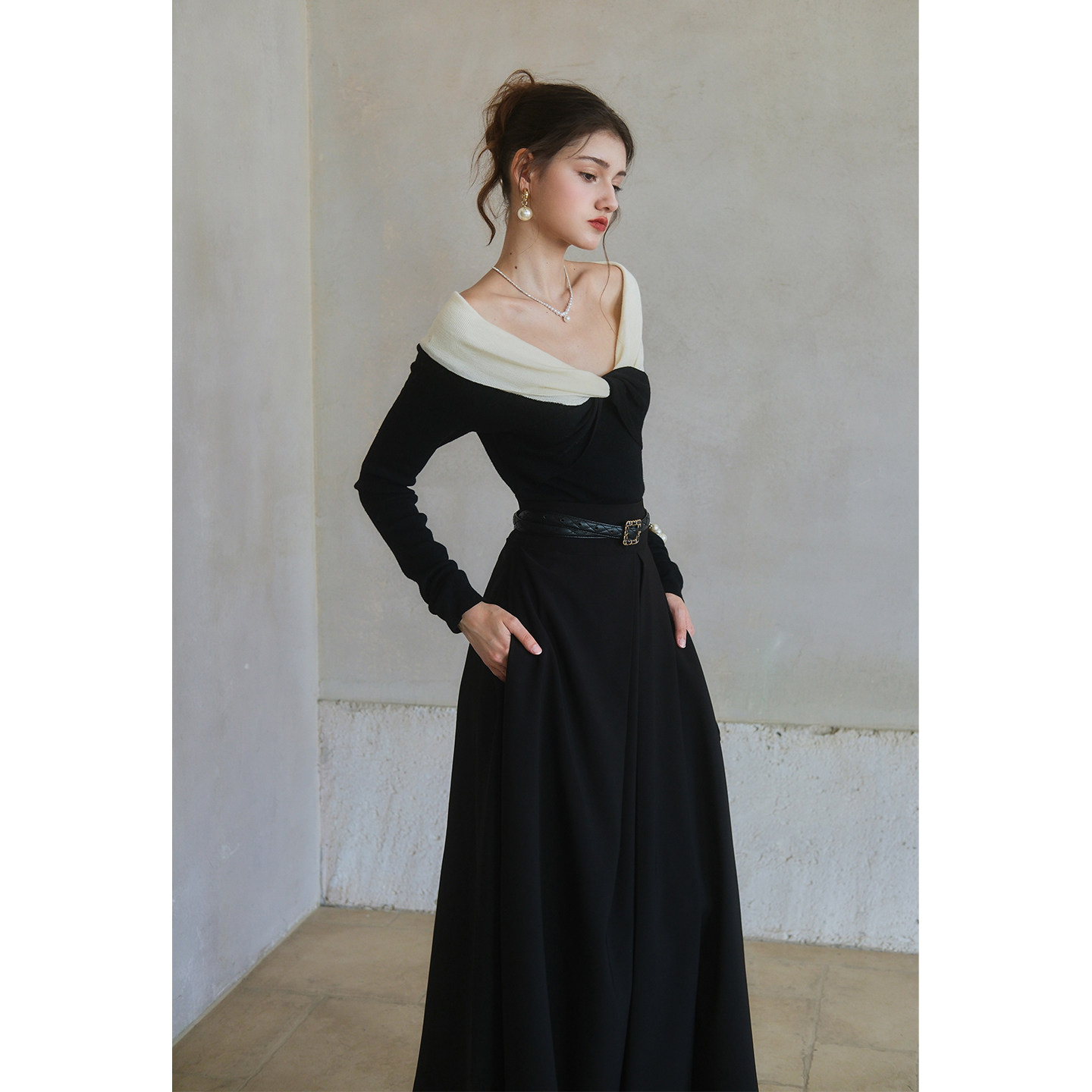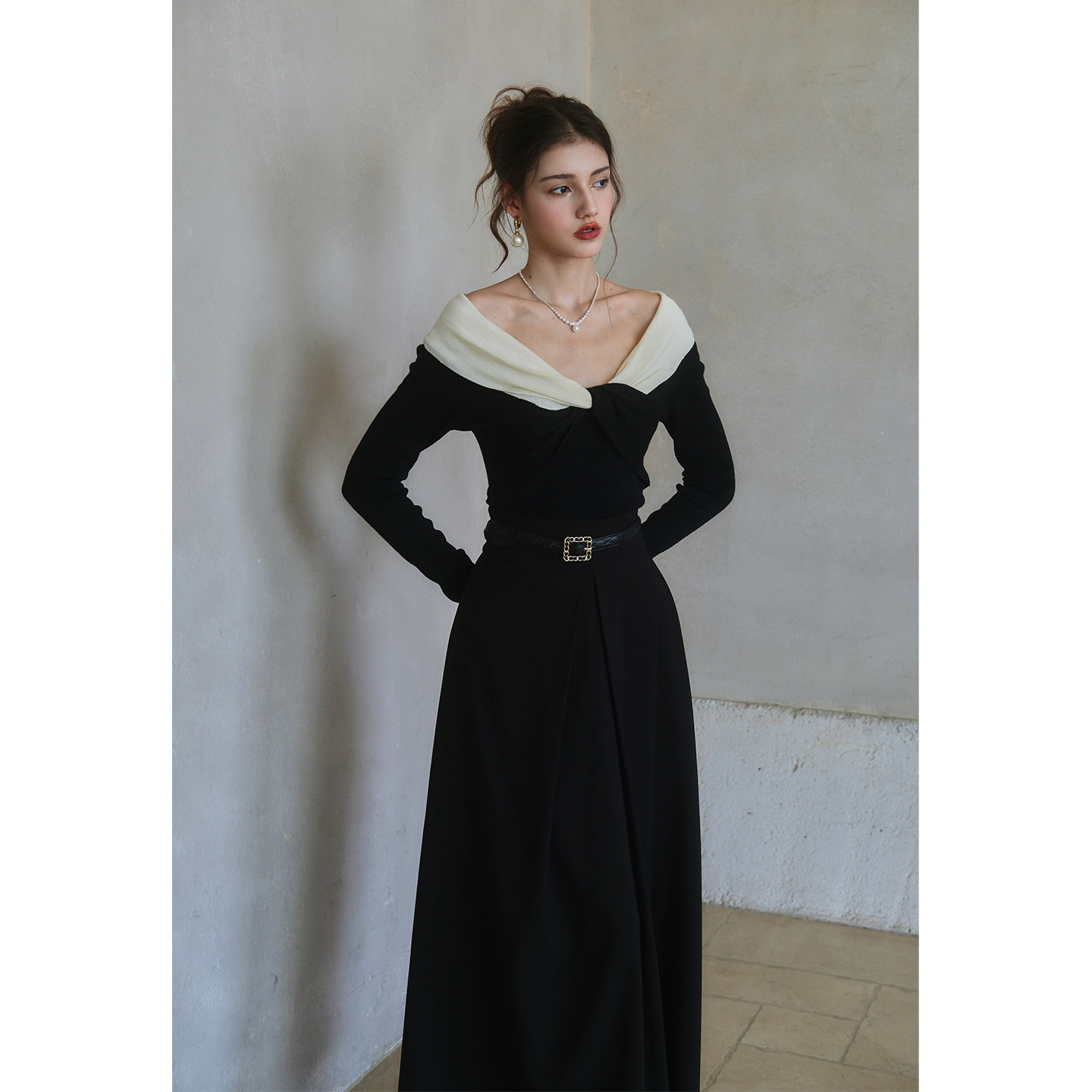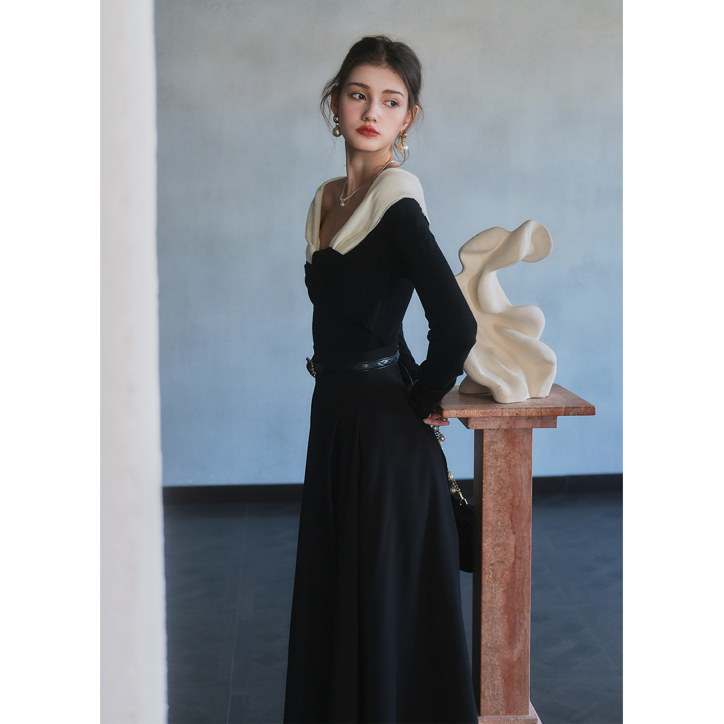 弹力腰压褶半裙套装 彼得潘大叔 针织衫 交叉领修身 维港映画