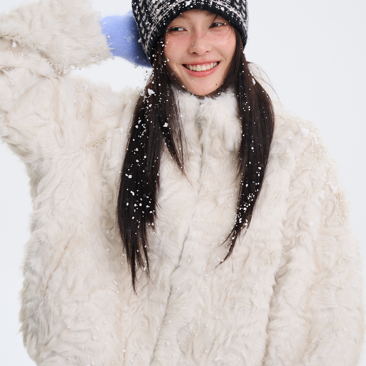 皮毛一体环保皮草外套女仿狐狸毛 两面穿短款 Happy Prescription