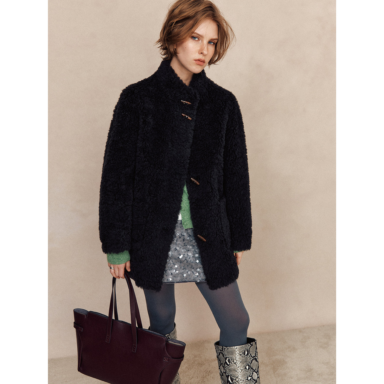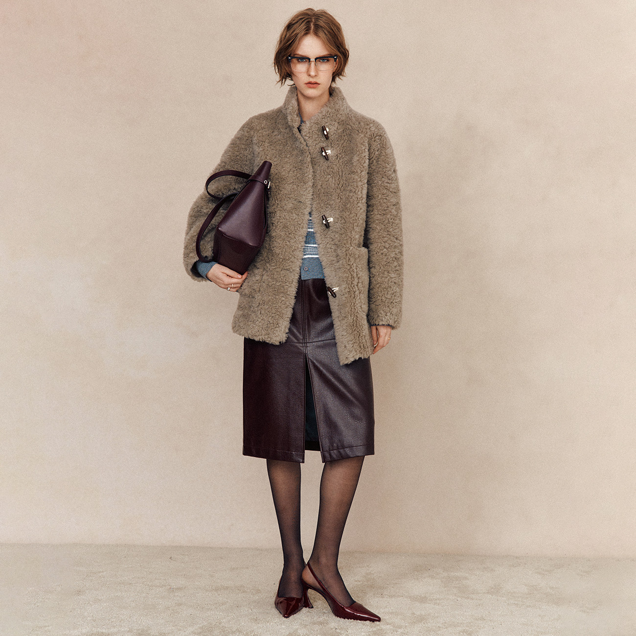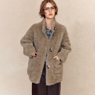 麂皮绒内层 100%羊毛 皮毛一体奢感皮草大衣外套女 怒推
