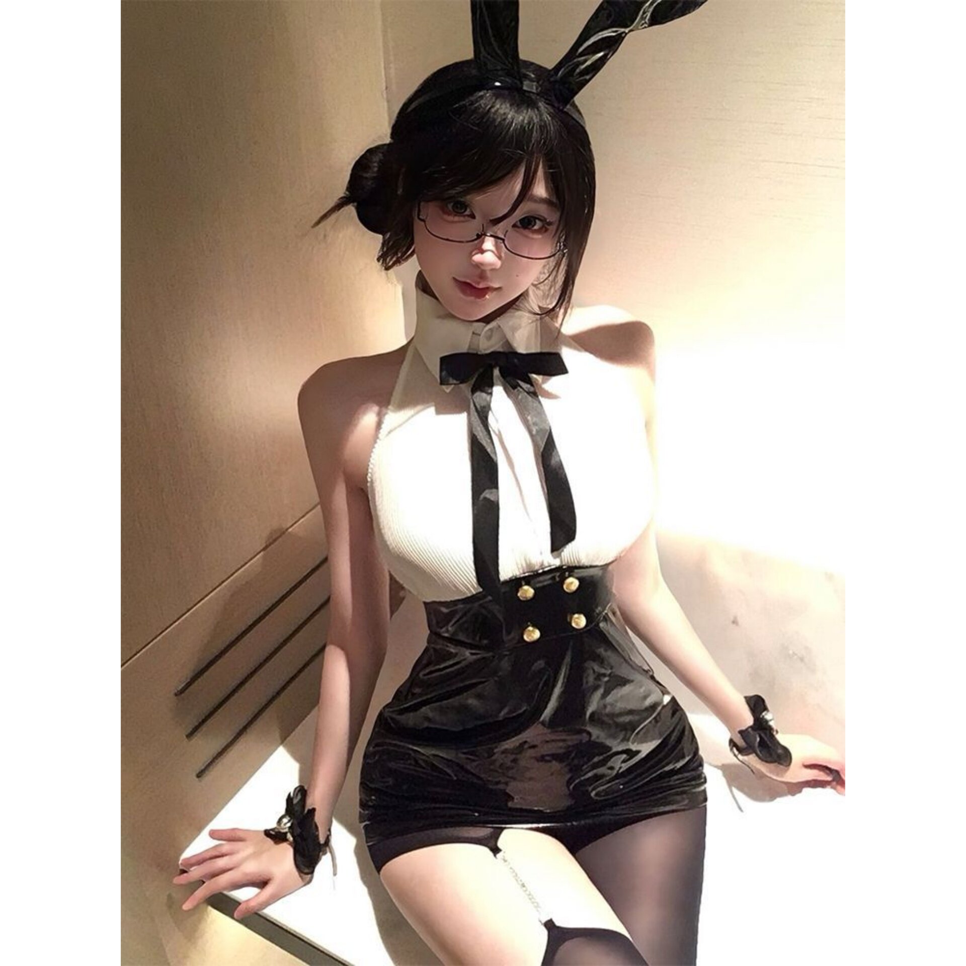 性感辣妹风挂脖连衣裙包臀裙短裙蝴蝶结收腰修身 气质露背纯欲减龄