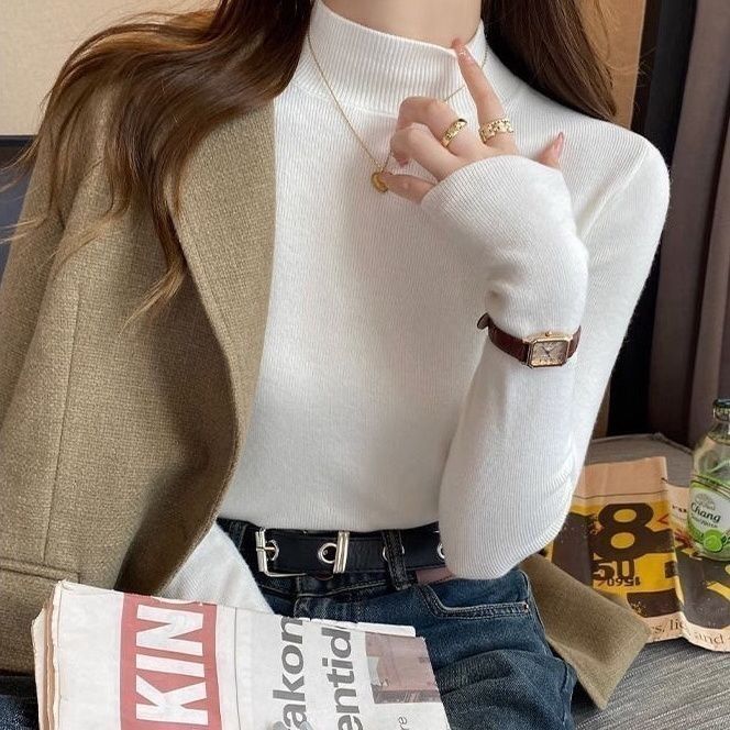 针织加绒保暖上衣 内搭毛衣洋气2025年新款 半高领打底衫 女士秋冬季