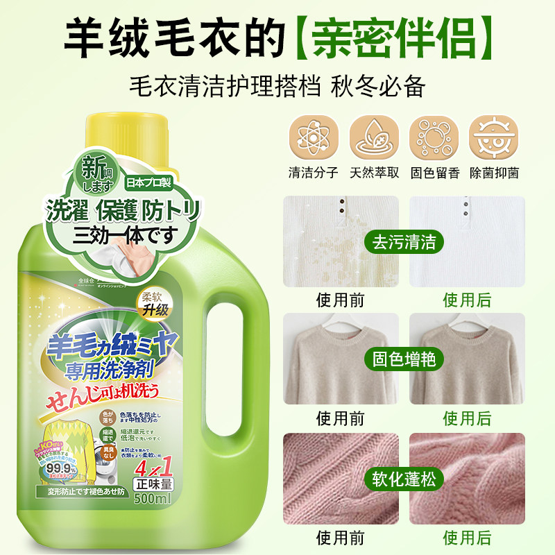 绿伞丝毛净500g 2瓶特殊材质洗衣液专为丝绸清洁家用衣物洗涤剂
