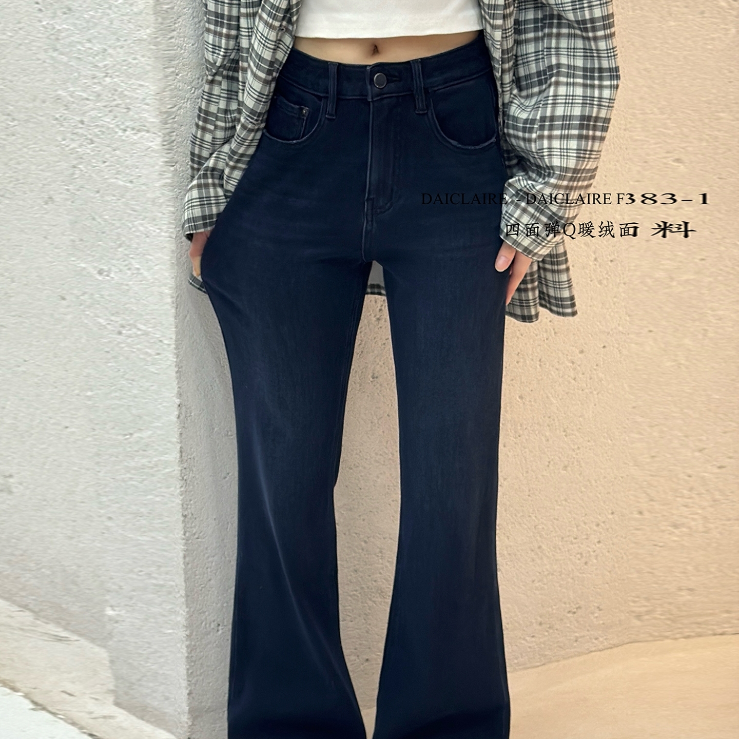 长裤 立显大长腿 女 磨毛拉绒配腰带显瘦高腰直筒牛仔裤 小马挂件
