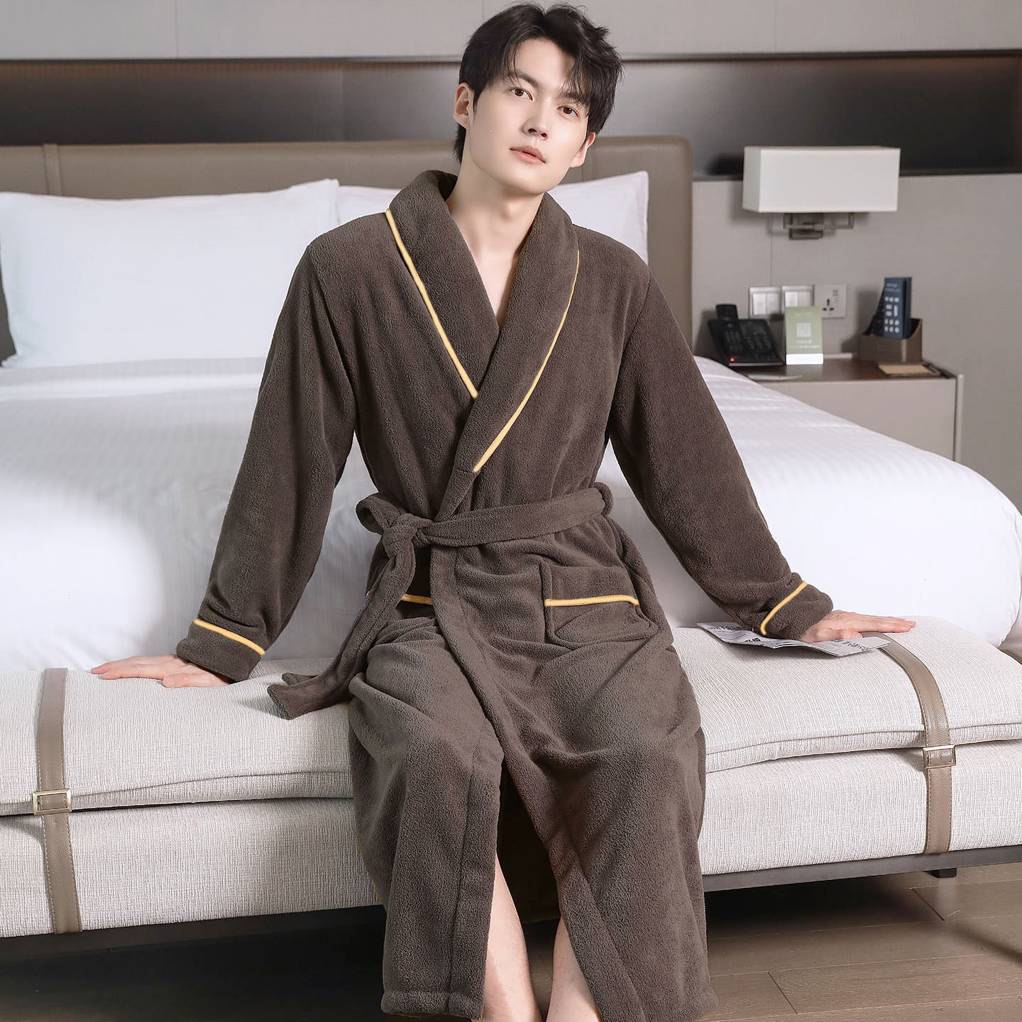 长款 2025珊瑚绒保暖睡衣男士 浴袍秋冬浴衣 新款 加厚加绒睡袍男冬季