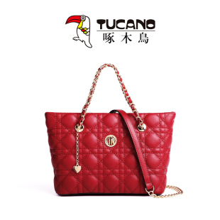 啄木鸟女包2026新款 手提斜挎包潮 真皮牛皮菱格包包轻奢小香风时尚