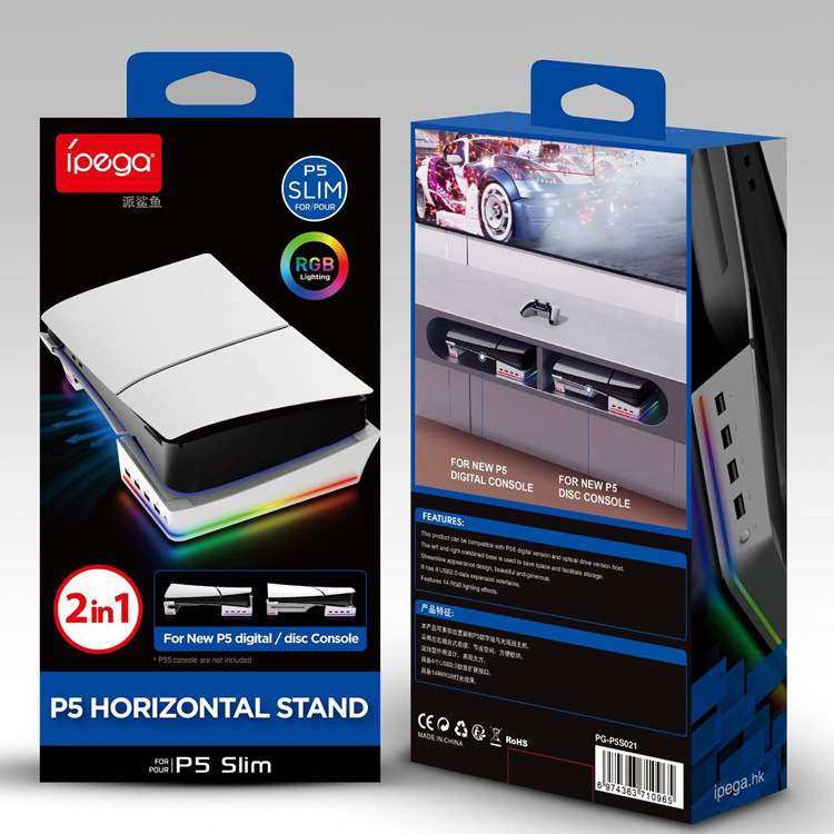 PS5 slim主机横放收纳架便携平放支架带4个USB接口RGB灯 PRO